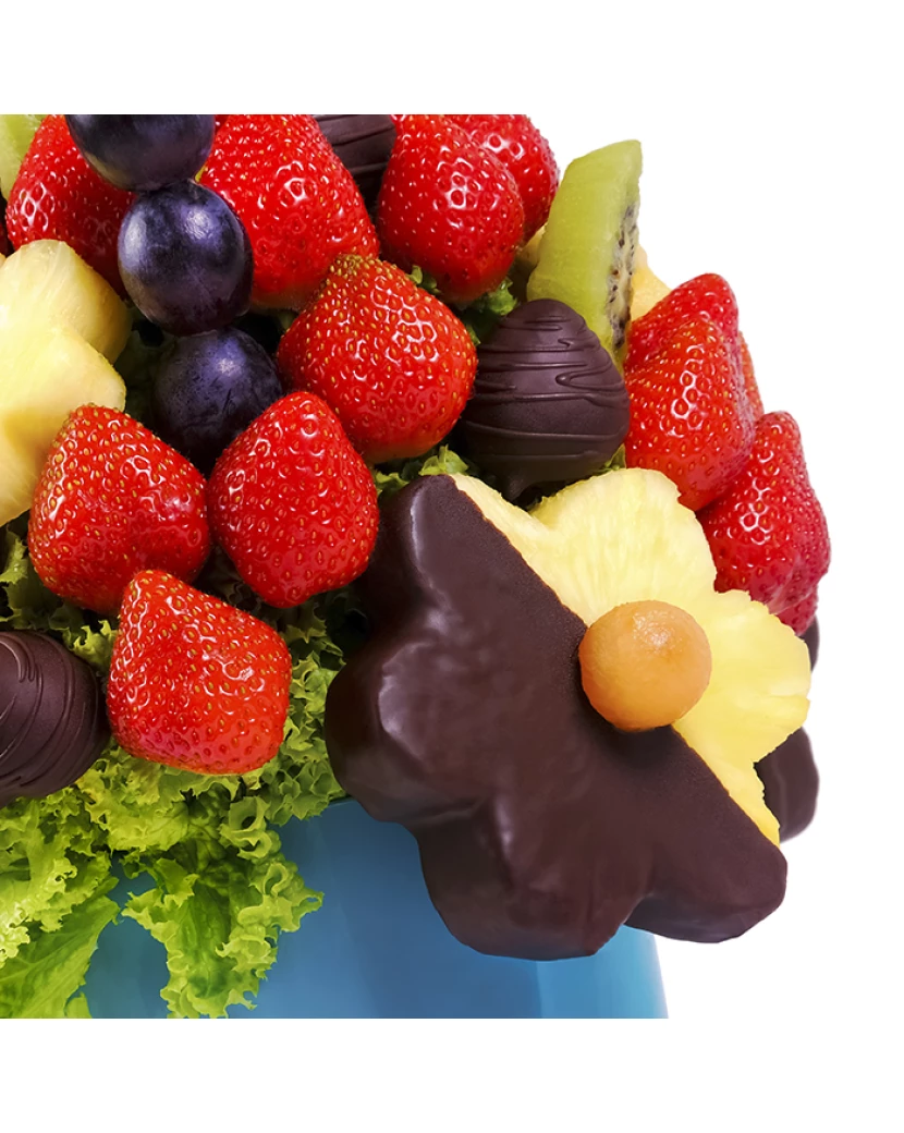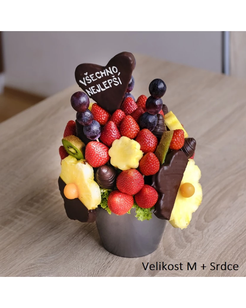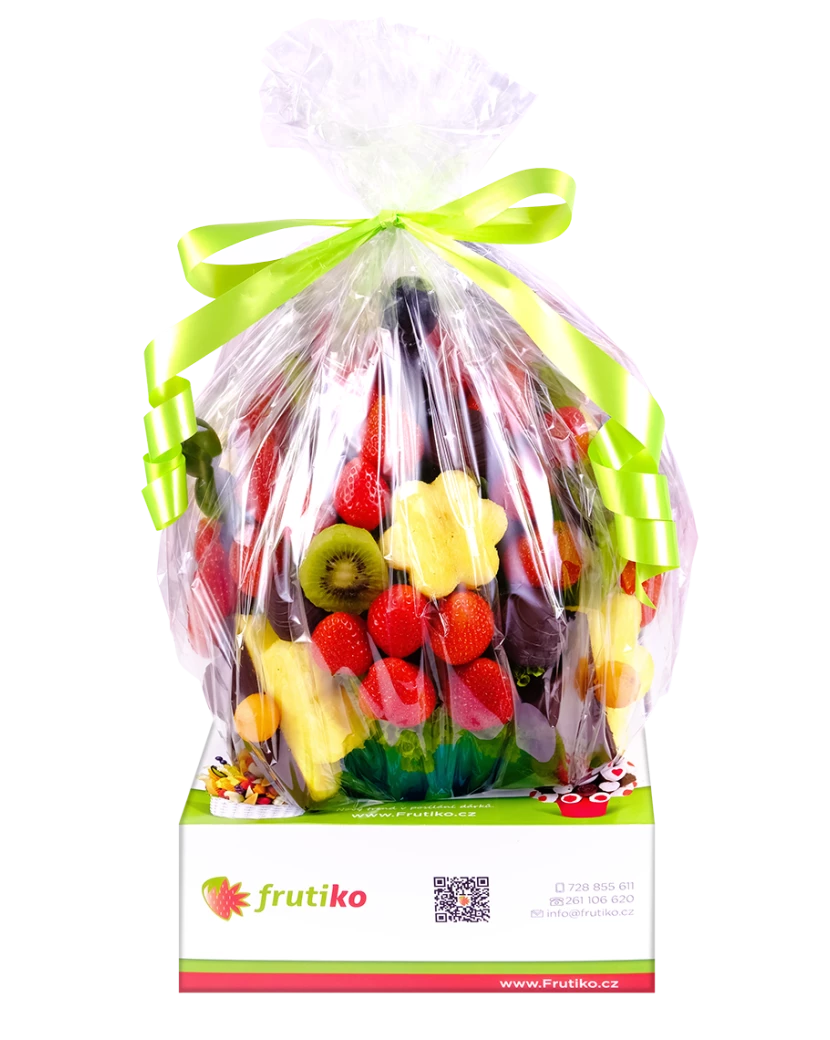 Ananasový sen je zcela jedlá ovocná kytice plná vitamínů, vytvořená z ananasu, sladkého melounu kantalup, hroznů a lahodné čokolády. Ovocné kytice Frutiko splní Vaše vysoké nároky na originální a stylový dárek pro Vaše nejdražší a stejně tak tato kytice Ananasový sen. Recept na netradiční dárek vhodný pro každou příležitost se ukrývá především v originálním nápadu, jímž květiny a bonboniéry z čerstvého ovoce bezesporu jsou.