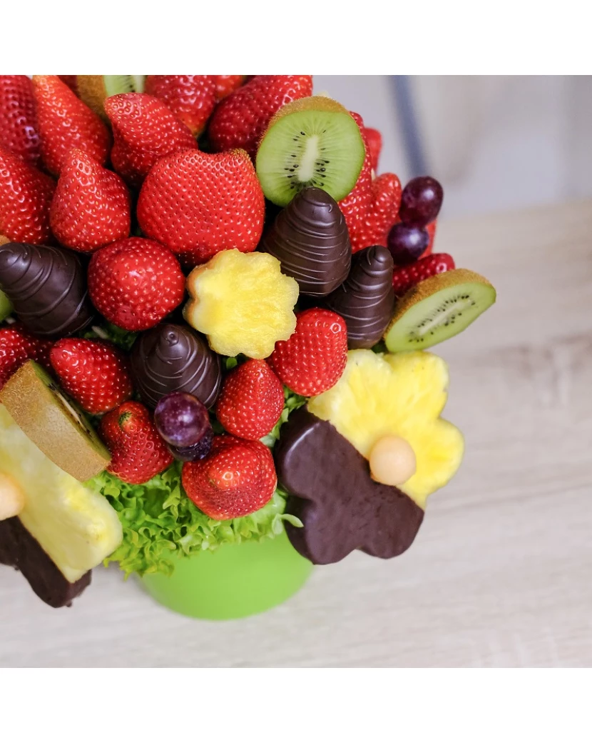Těm, kteří mají rádi sladký ananas zachutná nejen Ananasový sen, ale také kytice Kokosový sníh, kde jsou ananasové kytičky a kousky šťavnatých jablíček namočeny do bílé belgické čokolády namočené v kokosu. Tato kombinace se může zdát na první pohled zvláštní, ale kdo jednou ochutná, okamžitě pochopí, že to je bezkonkurenční spojení chutí!