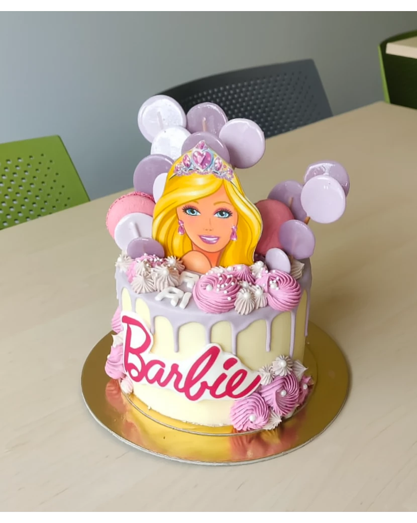 Nejlepší dorty pro děti ať už s designem Barbie pohádky či jiných oblíbených dětských pohádek a postaviček, vznikají v naší Frutiko cukrárně díky našim vlastním domácím receptům. Náš recept na Barbie dort skrývá jen kvalitní lehké ingredience - mascarpone, tvaroh nebo zakysaná smetana, k tomu šlehačka a belgická čokoláda. Lehké piškotové těsto zvláčněné ovocnou šťávou a ovocnou dření z čerstvého rozmixovaného ovoce. Dort je potažený krémem, ozdobený stékající čokoládou vámi zvolené barvy (může to být růžová, fialová, lila nebo jiná barva) a dozdobený makronkami, cukrovými pusinkami, sprinkles a krémovými bochánky.