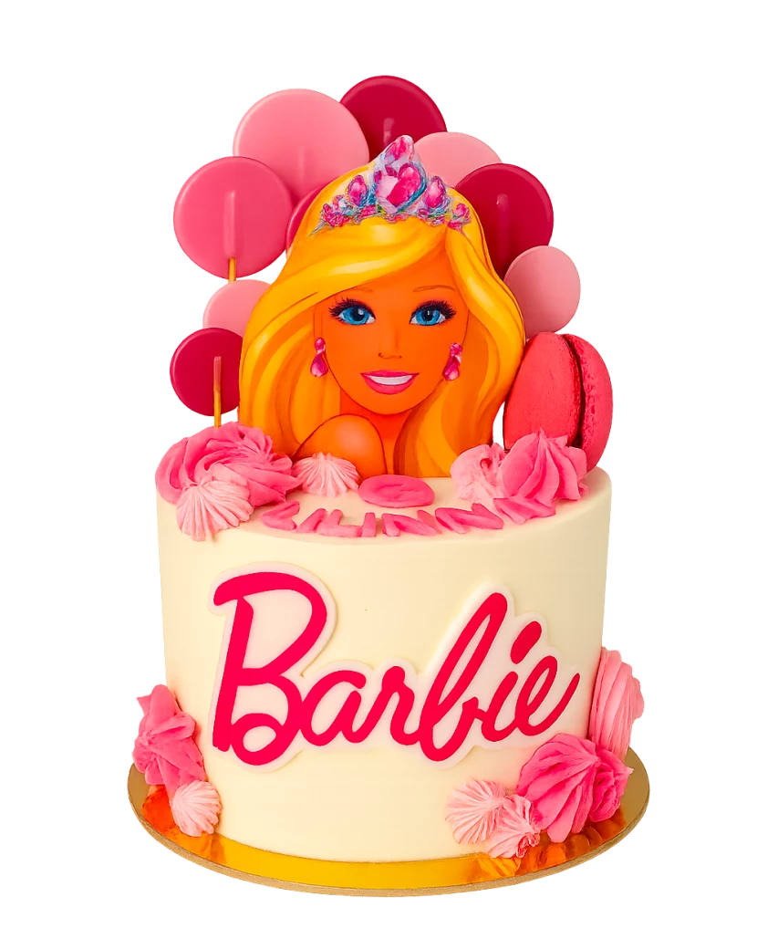 Panenka Barbie je oblíbená hračka každé malé holčičky ale i náctileté slečny a film Barbie její popularitu ještě umocnil. Proto je náš dort s panenkou Barbie z jedlého tisku na jedlém papíře jedním z nejoblíbenějších dortů pro mladé dívky. Tento dort je ideální dárek pro holky k narozeninám. Co se týče chutí, máte na výběr lehký světlý piškotový korpus, kakaový - čokoládový korpus nebo vláčný červený Red velvet. Krém na Barbie dort připravujeme nejčastěji z mascarpone, šlehačky a belgické čokolády, můžete si ale vybrat i krém čokoládový, tvarohový nebo ze zakysané smetany. Dovnitř dortu dáváme čerstvé ovoce a ovocnou dřeň a vršek dortu zdobíme čokoládou a posypky.