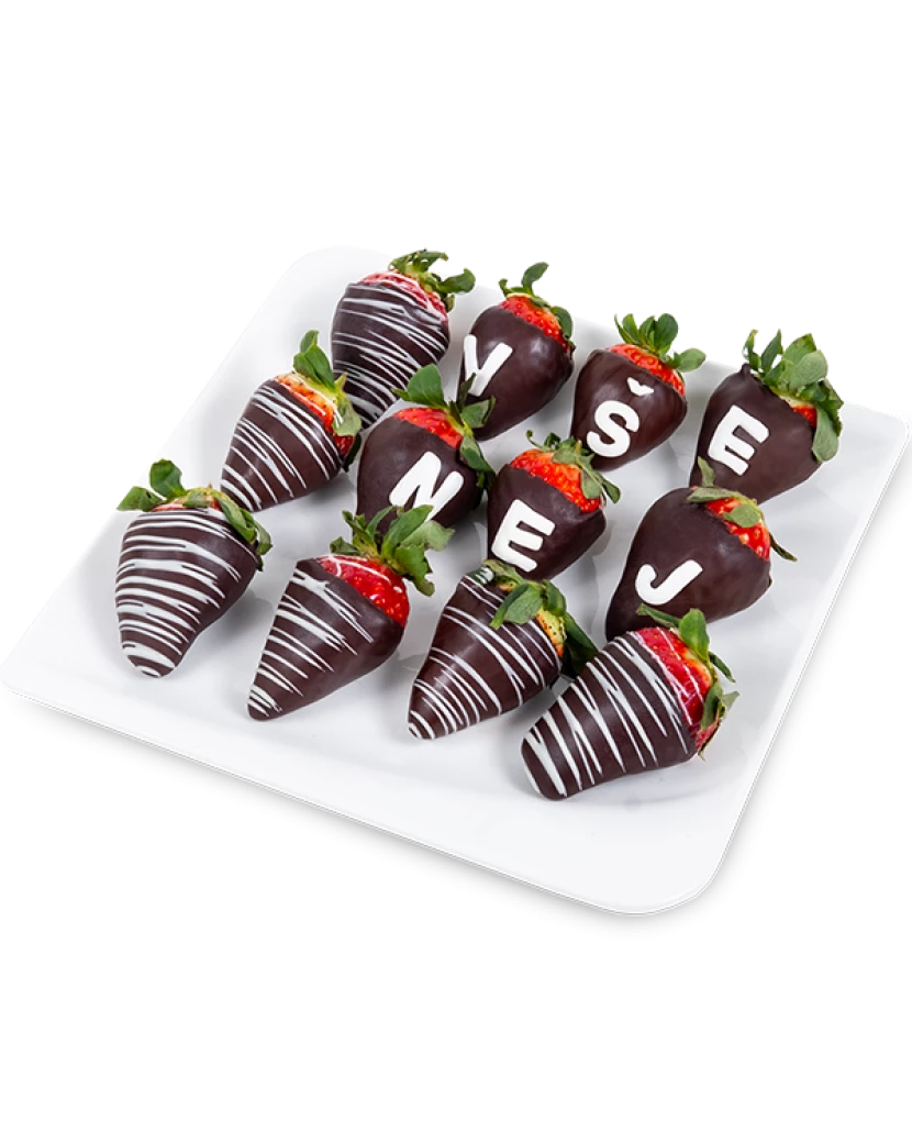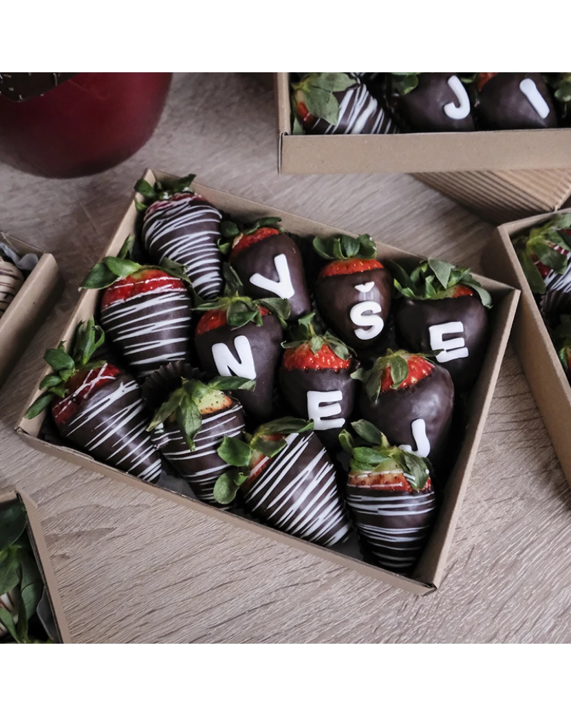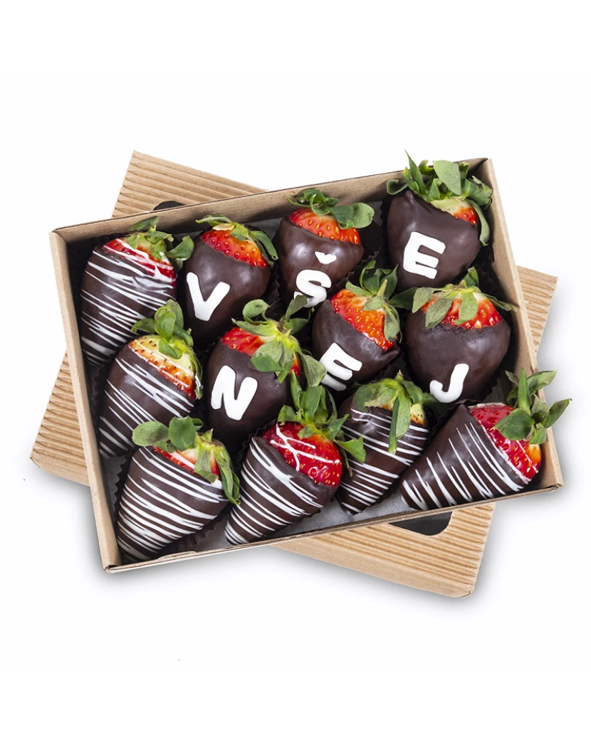 Jahody v čokoládě s nápisem Vše nejlepší je gastronomickým zážitkem a co teprve ve spojení s lahodnými čerstvými jahodami. Dárková bonboniéra Frutiko s jahodami v čokoládě s nápisem z fondánu potěší všechny milovníky čokolády. Jahody jsou namočené v tmavé a bílé belgické čokoládě Callebaut. Tento originální způsob přání vykouzlí úsměv na tváři všem obdarovaným.