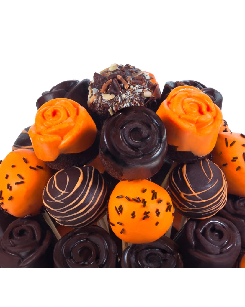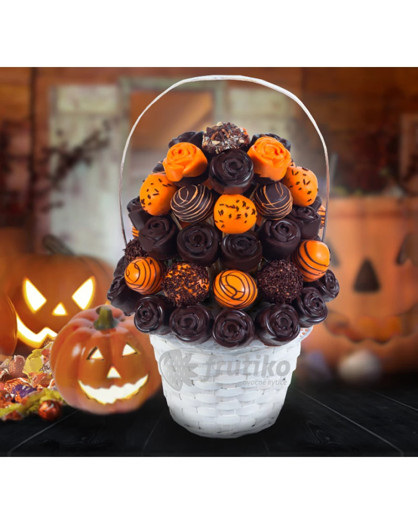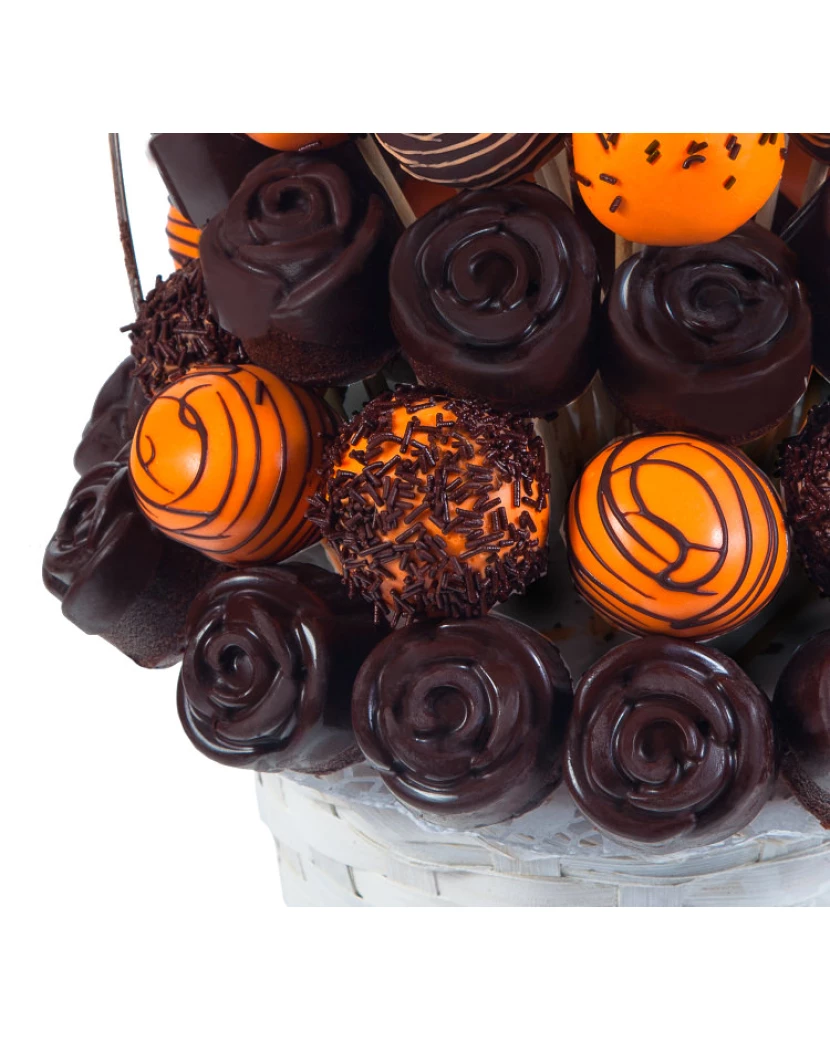 Kytice Čarovná noc potěší jako sladkost i dekorace na Halloween i k jiné příležitosti. Halloweenské sladkosti - muffiny zdobené tmavou a oranžovou čokoládou naaranžované do krásné dortové kytice udělá na Halloween 2015 radost nejen dětem ale i dospělým.