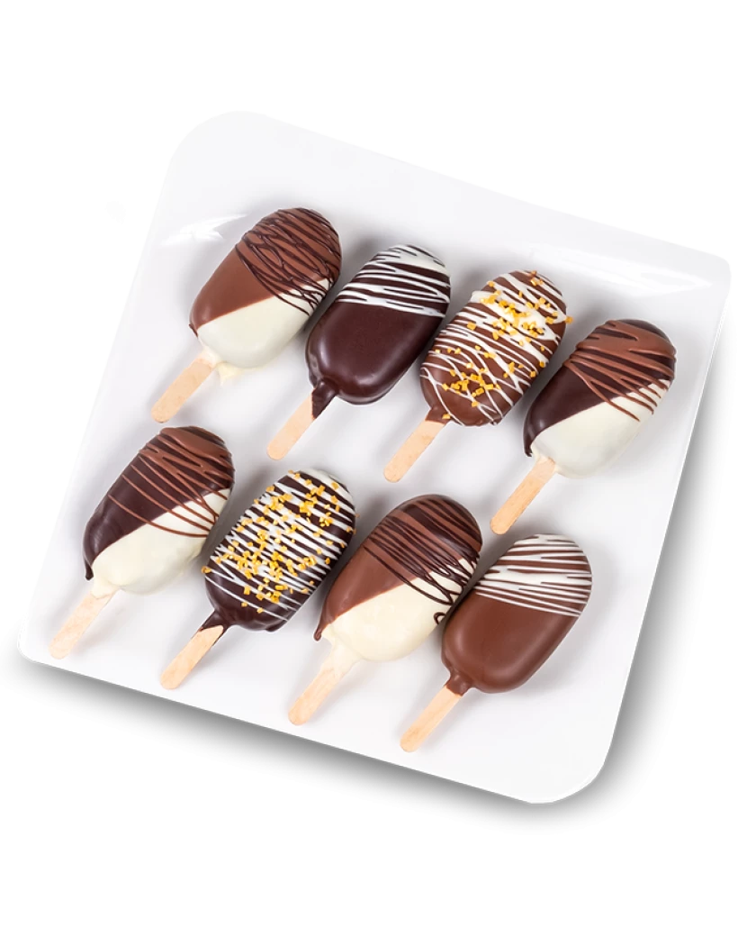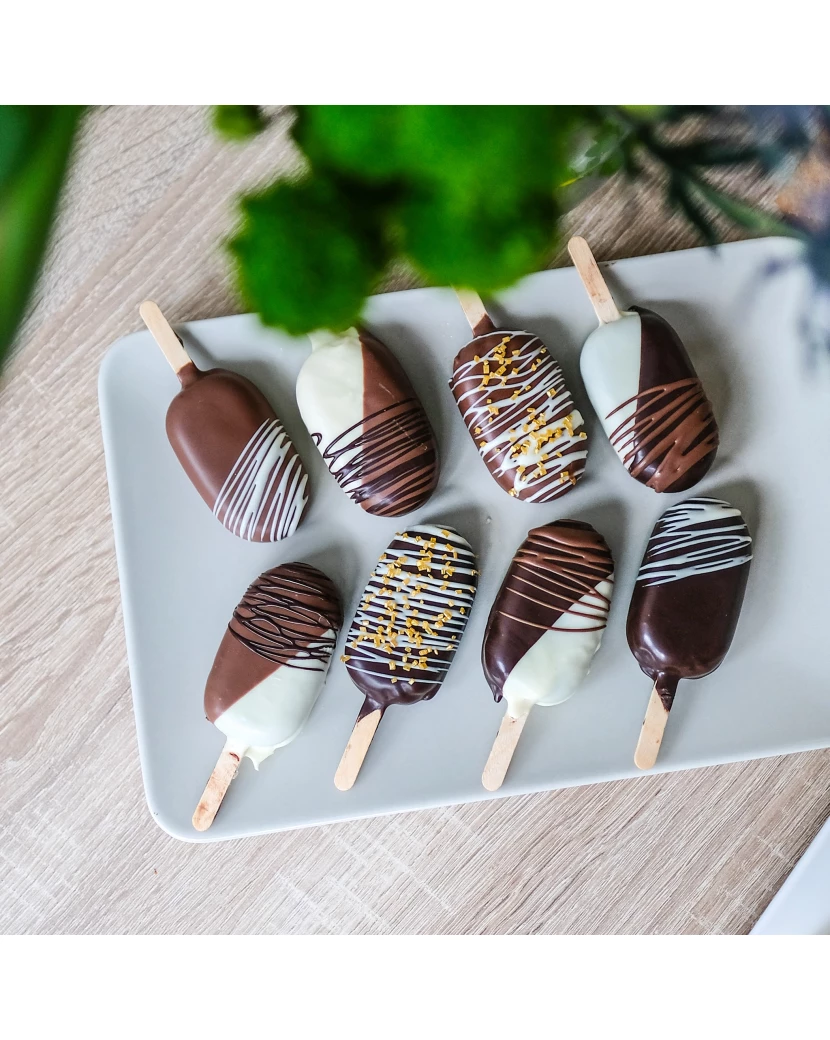 Klasické nanuky z ovocné dřeně a belgické čokolády sice oproti těmto dortovým obsahují méně cukru a neobsahují lepek, na druhou stranu pečené nanuky jsou moc lahodné a oblíbené jako občerstvení pro děti. Děti tyto nanuky milují a my jim rádi připravíme barevné nanuky v barvách dle vašeho přání.