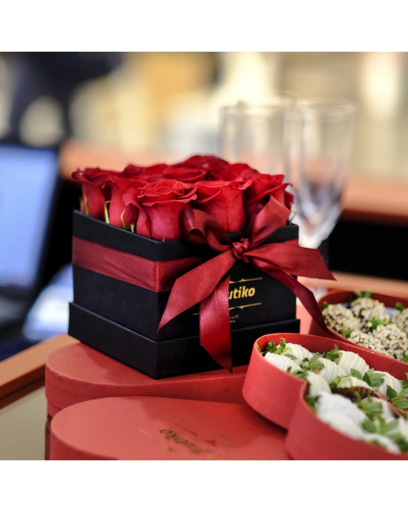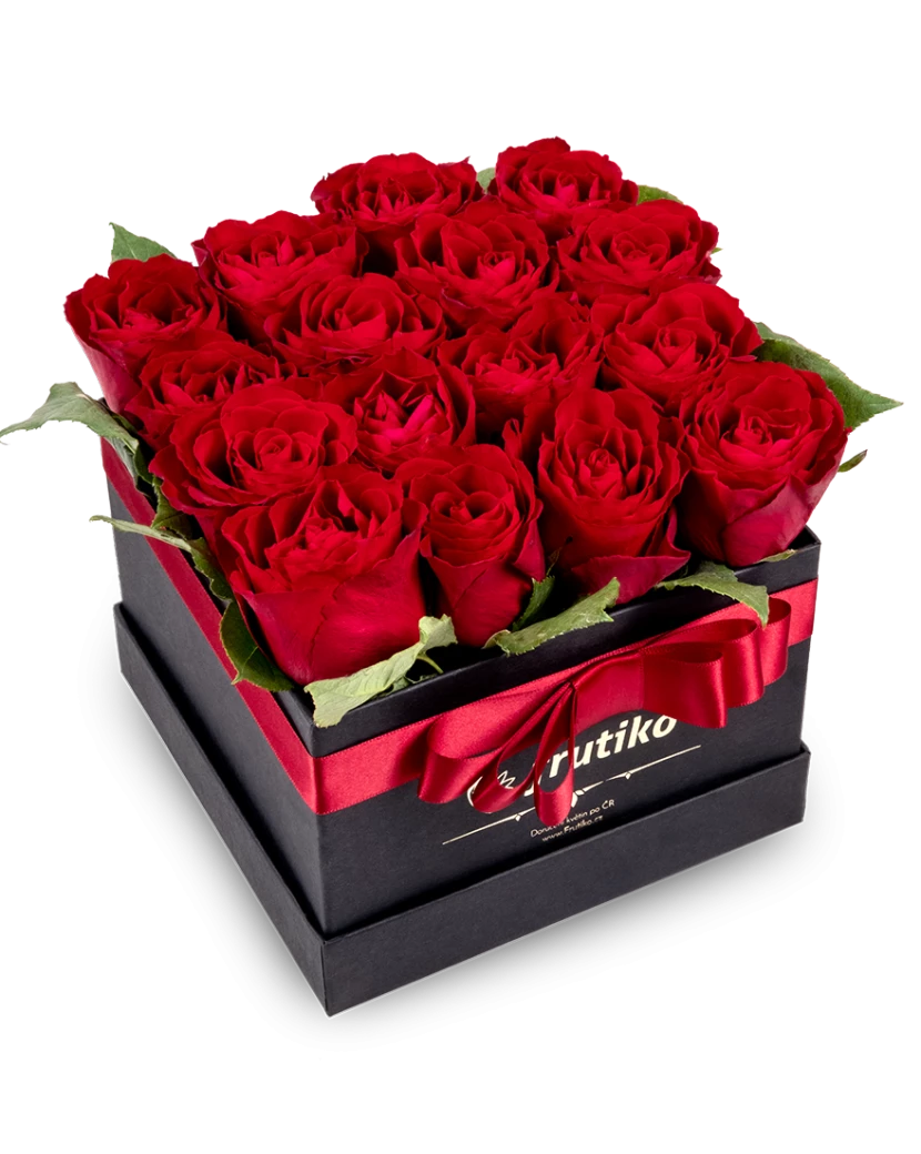 Frutiko delivers black boxes of red roses in three different sizes: you can choose a box with either 9, 16, 25 or 30 pieces. We will deliver our box of freshly cut red roses anywhere in the Czech Republic including the gift card with your personal message.