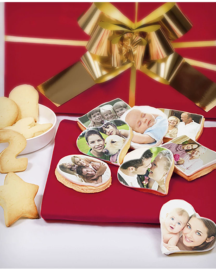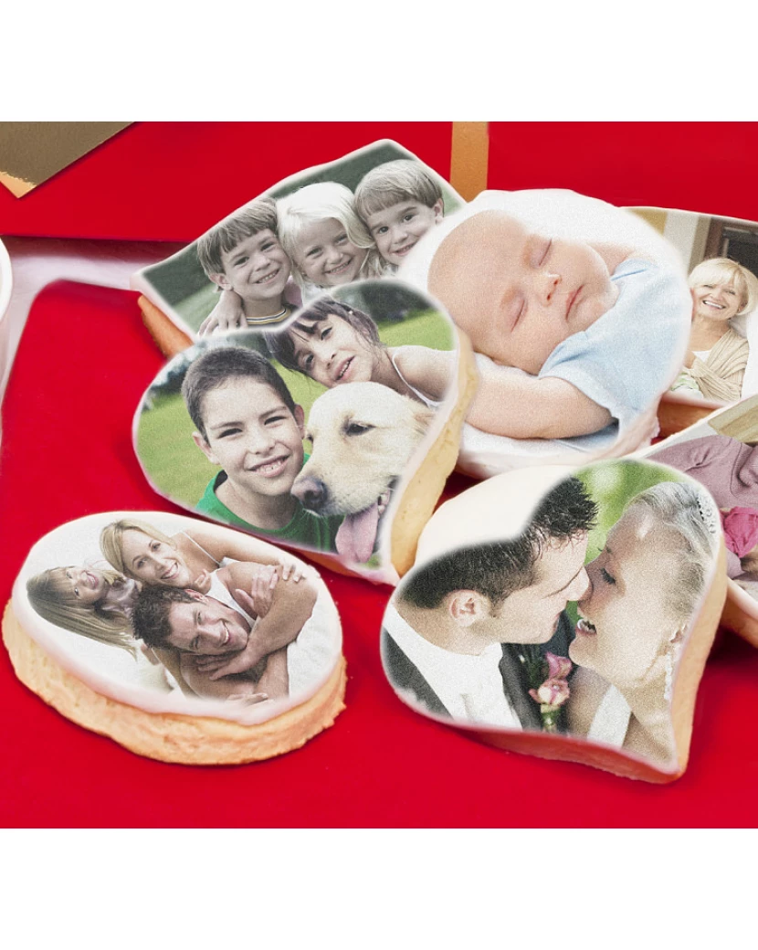 Fotografie na sušenkách jsou naprosto novým a originálním nápadem na dárek pro Vaše blízké a přátele. Vaše rodinné foto na sušenkách představuje skvělý dárek pro Vaše příbuzné i občerstvení jakékoli rodinné oslavy. Vámi zaslanou fotografii vytiskneme na jedlý papír a upevníme navrch lahodných sušenek ve tvaru čtverce nebo kulaté Takzvané foto sušenky s fotkou Vaší rodiny, přítele či zvířecího mazlíčka můžete objednat snadno online a my Vám je doručíme po celé České republice. Fotografie nahrajte při objednávce, nebo nám je zašlete na email info@frutiko.work. Prosíme vždy nahrávejte kvalitní fotografie v dobrém rozlišení a nasvícení (mějte prosím na paměti, že jedlý tisk fotku ztmaví a zhorší) a osobitý dárek je na světě!