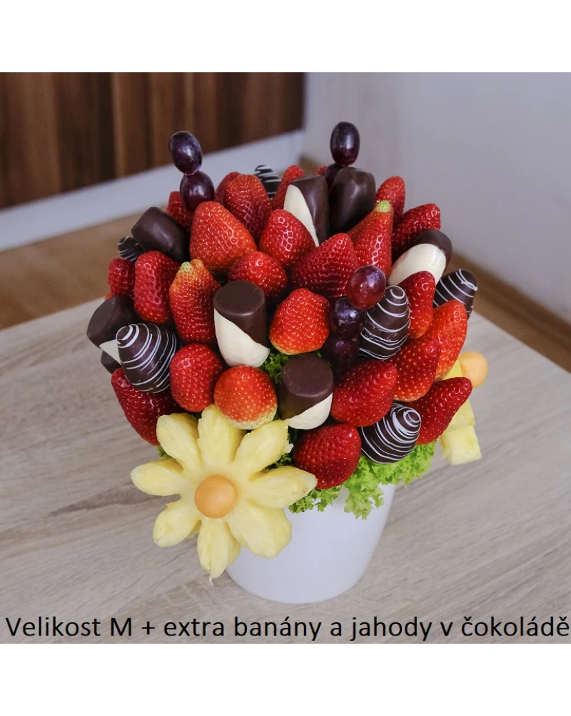 Pokud milujete čerstvé, voňavě jahody, ale chcete si trošku zahřešit a přidat k nim i nějakou čokoládu, doporučujeme kytici z jahod v čokoládě nebo jahody a kousky ovoce v belgické čokoládě v ovocné bonboniéře