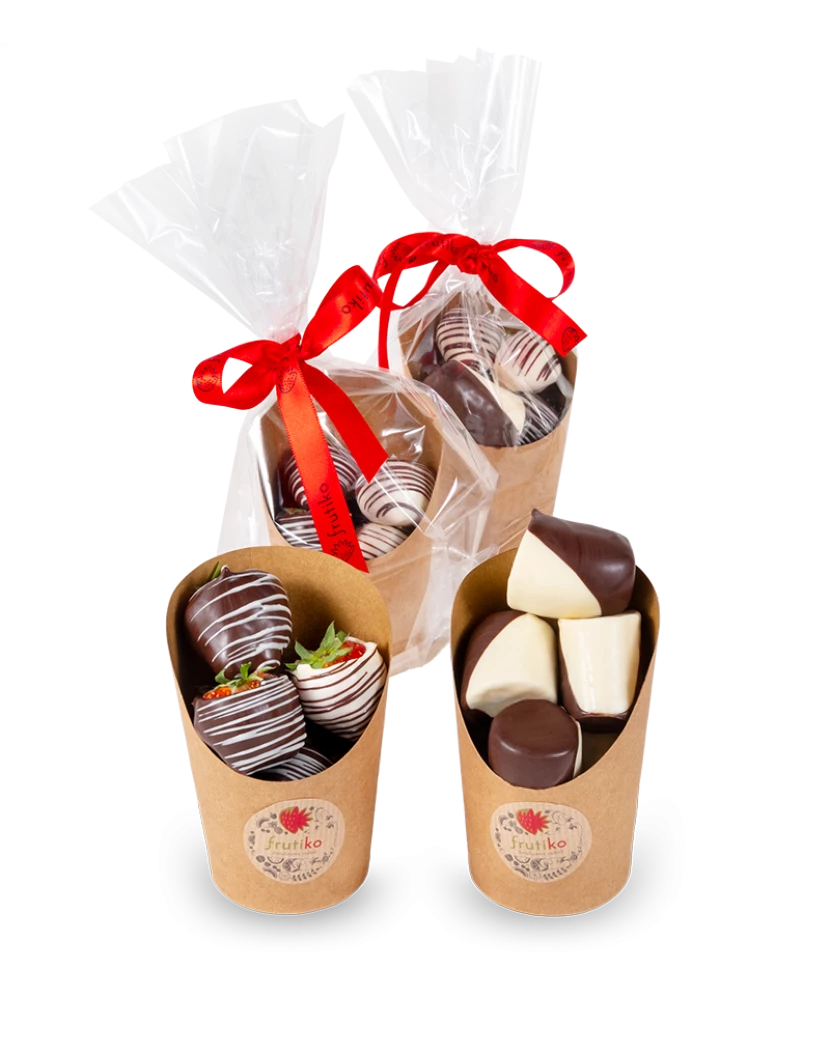Vaši objednávku jahůdek a banánů v čokoládě si můžete vyzvednout osobně na výrobně Frutiko v Čestlicích, nebo na pobočce v Praze a Brně. Zajišťujeme také rozvoz kamkoli po celé České republice. Produkty jsou dárkově balené a převáženy chlazené tak, aby k Vám přišly čerstvé a neponičené.