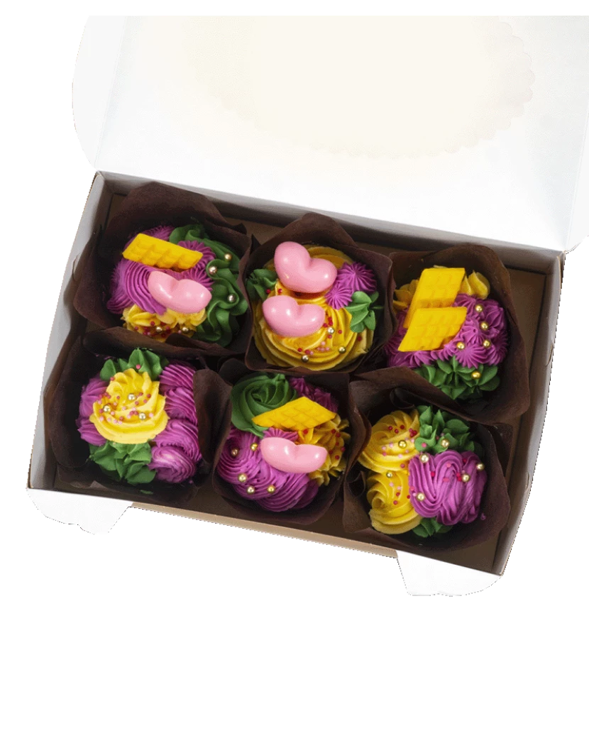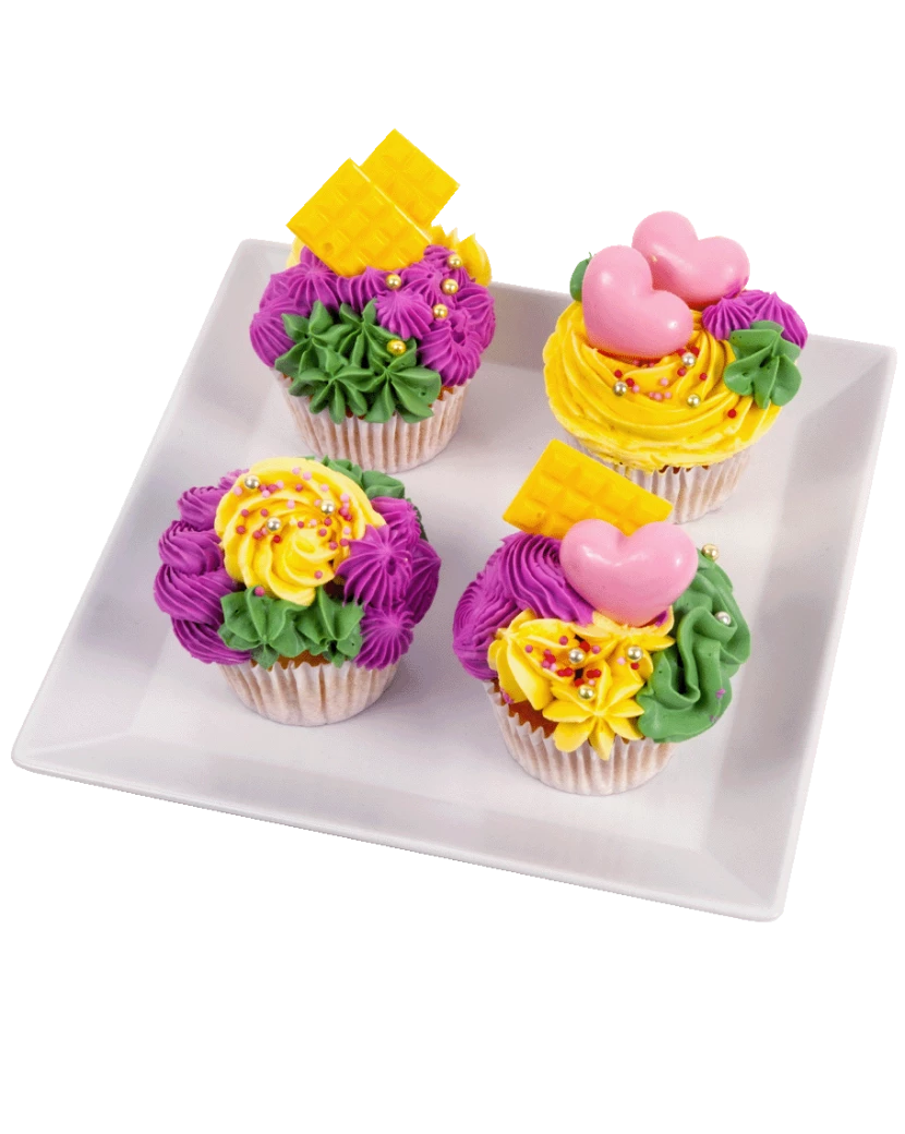 Cupcake je malý dortík určený pro jednu osobu, pečený v papírovém košíčku. Na vrchu je zdobený krémem a dekoracemi. Tyto jarní cupcakes jsou připraveny ze světlého piškotového těsta a zdobené krémem z mascarpone a belgické čokolády. Krém je obarven do jarních pastelových odstínů - magentově růžové, žluté a zelené. Na závěr jsou cupcakes dozdobeny čokoládovými dekoracemi, cukrovými perličkami a posypkami.