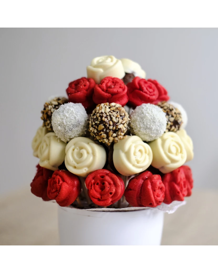 Popřát Krásné výročí svému miláčkovi a partnerovi lze mnoha způsoby, kombinace krásné a zároveň jedlé lahodné kytice k výročí je však tím nejlepším dárkem k výročí. Kytice Krásné výročí je vyrobena z čerstvě upečených kakaových muffinů a tzv. popcakes neboli dortových lízátek na špejli zdobených belgickou čokoládou, oříšky, kokosem a posypky. Originální přání k výročí z lahodných dortíků či přání k Valentýnu z čerstvého ovoce doručí kurýr Vaší lásce domů či do práce spolu s blahopřáním s Vaším osobním textem přání k výročí.Kytice, která lze sníst potěší více, než klasické řezané květiny k výročí.