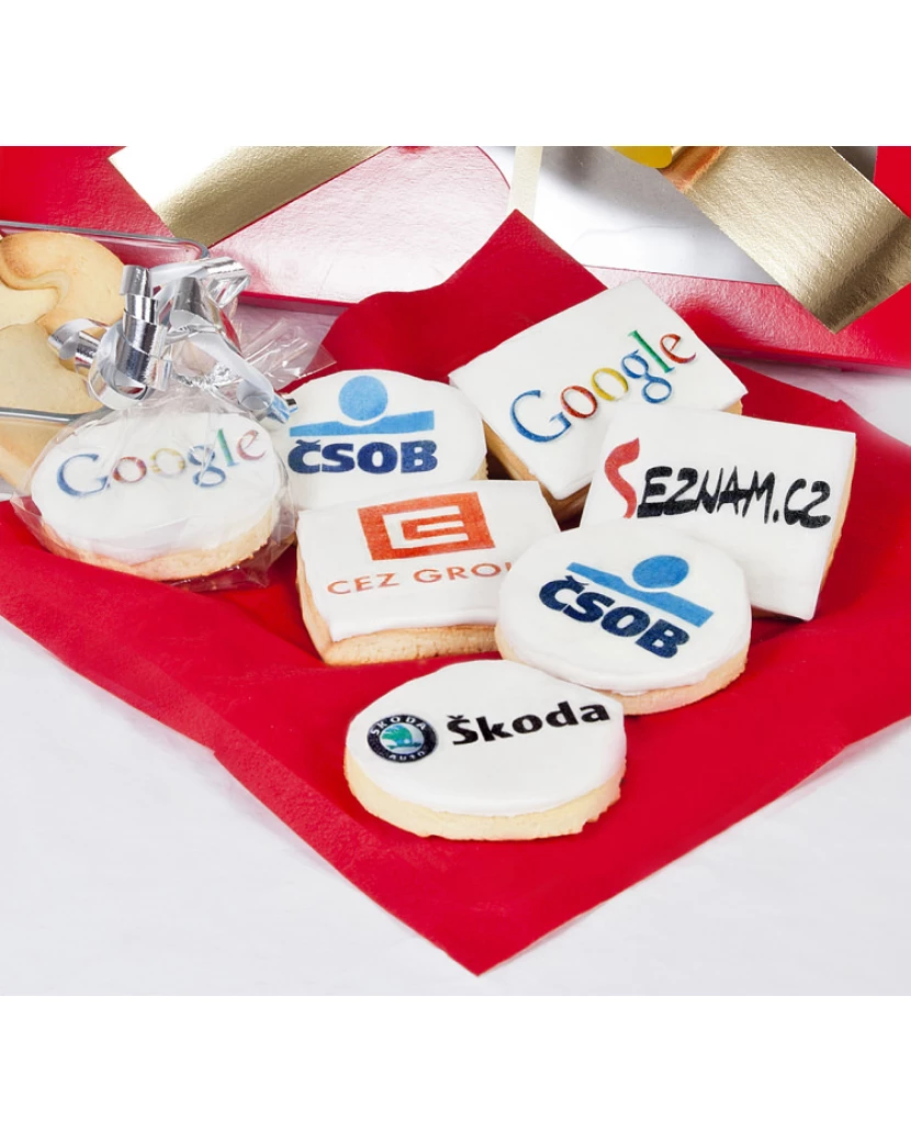 Logo firmy na sušenkách je skvělý nápad na dárek pro zaměstnance i obchodní partnery i originální občerstvení na firemní akce. Logo sušenky Frutiko s logem společnosti potěší Vaše partnery i hosty firemního večírku a zároveň se stanou netradičním lahodným suvenýrem. Sušenky s logem můžete objednat online, případně nás můžete kontaktovat pro cenovou nabídku u většího počtu sušenek s logem. Sušenky Vám doručíme kamkoli po České republice i na Slovensko. Originální firmy využívají originální, netradiční dárky jako sušenky s logem.