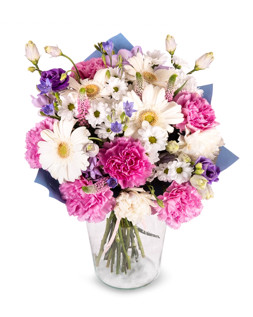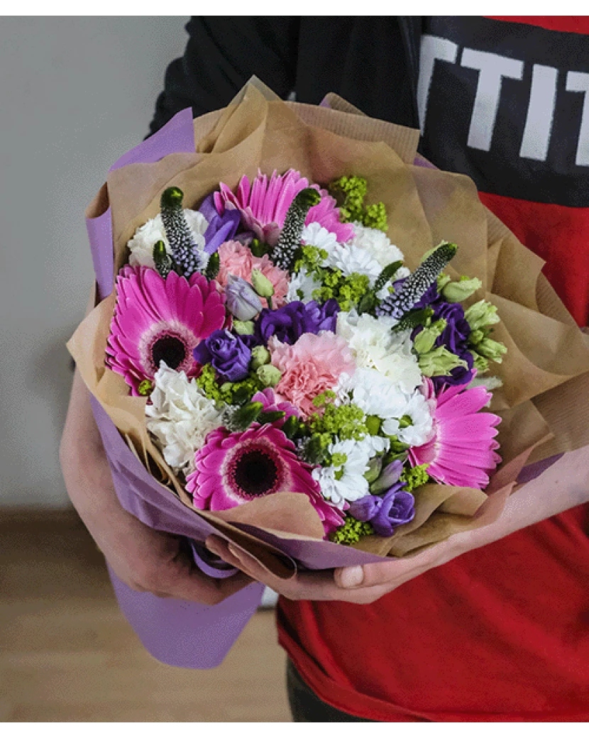 Romantický večer se neobejde bez krásné kytice. Naše floristky vytvořily romantický a něžný pugét květin jako jsou gerbery, karafiáty nebo fresie. Tato kytice je ryze ženská, každá slečna nebo dáma bude ohromena, pokud ji tuto něžnou kytici necháte doručit.
