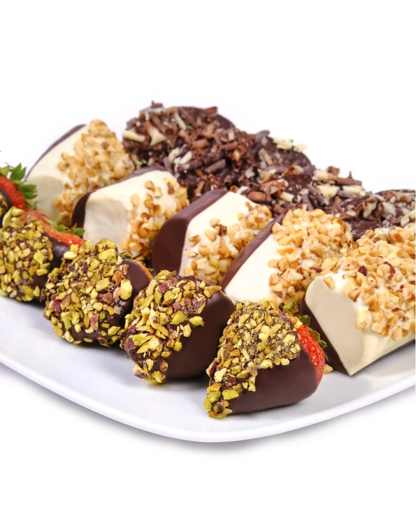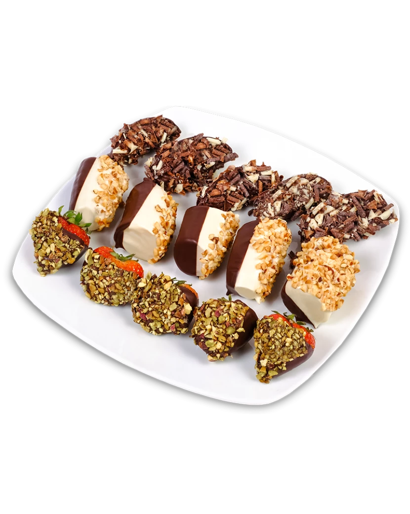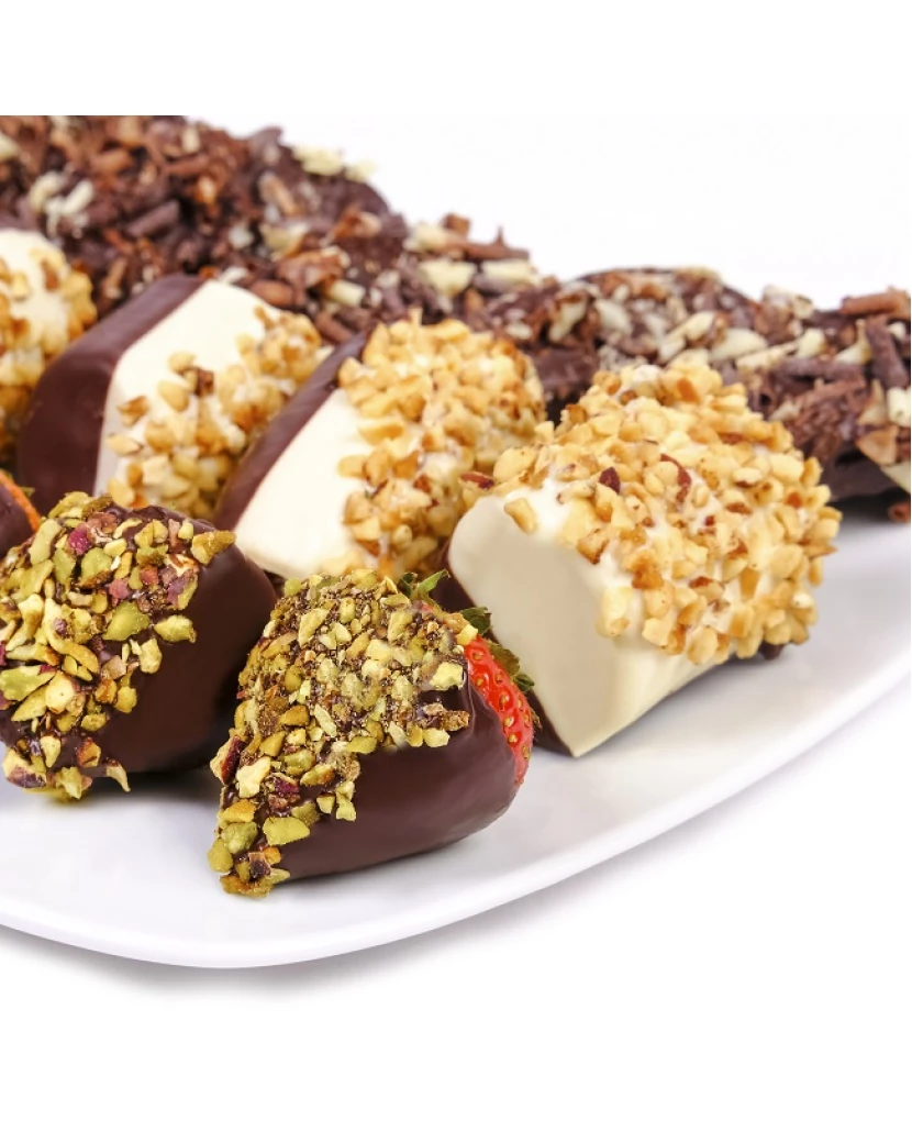 Složení: Banán, Jablka, Jahody, Čokoláda, Bílá čokoláda, Tmavá čokoláda, čokokousky, Lískové ořechy, Pistácie