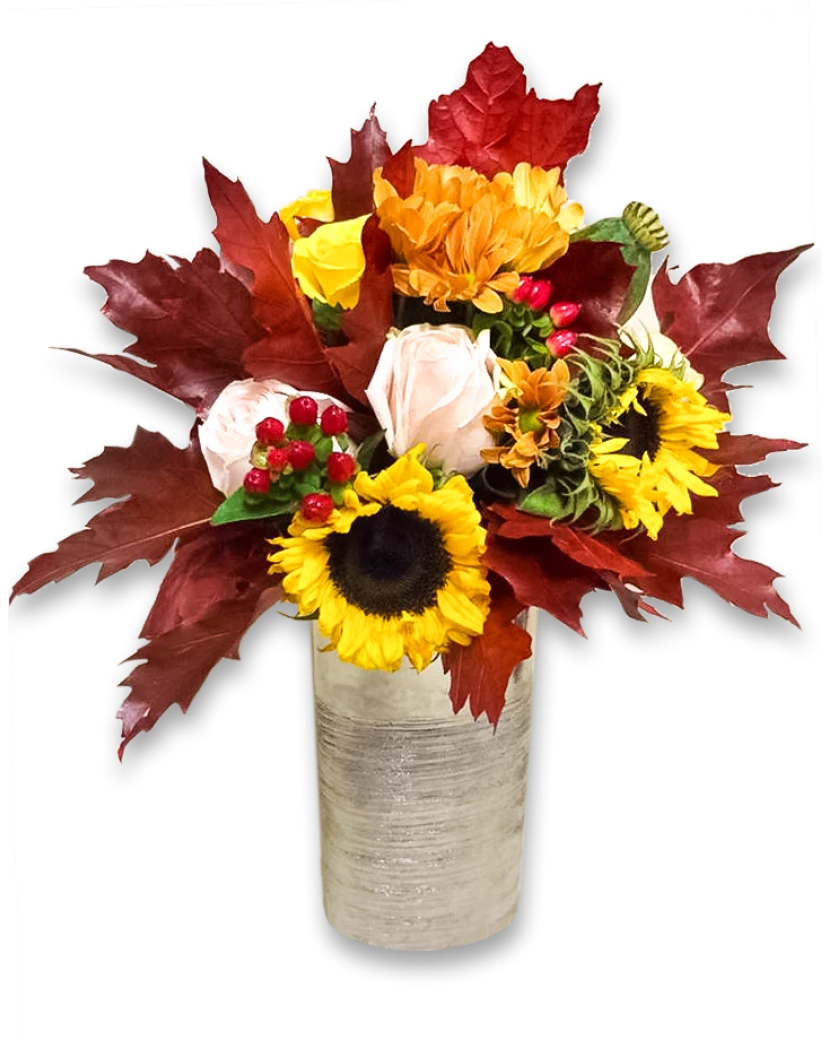Složení: Růže, Makovice, Chryzantémy, Dubové listí, Slunečnice, Hypericum