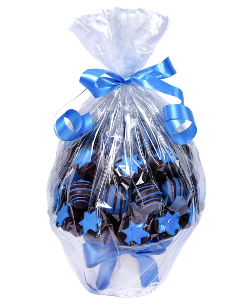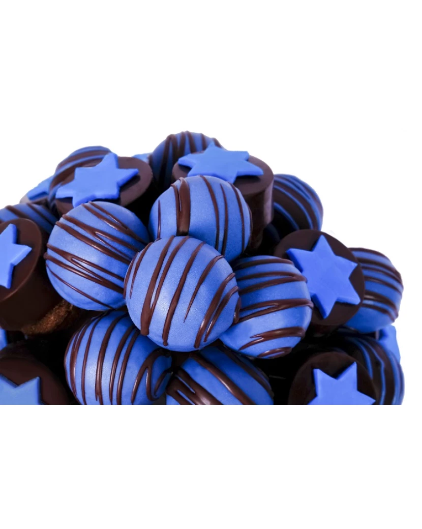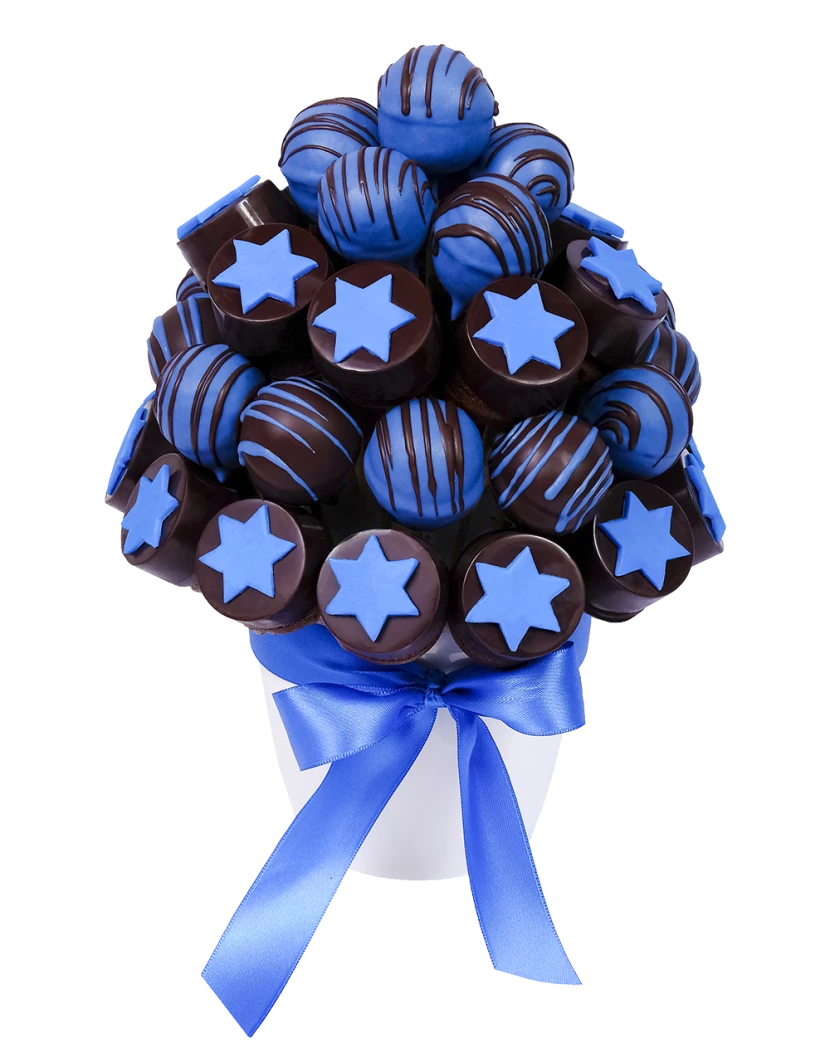 Kombinace lahodných popcakes a muffinů, které jsou namáčeny v pravé belgické čokoládě, je prostě neodolatelná. Modrá barva s hvězdami připomíná noční nebe, proto bude dortová kytice skvělou dekorací na Vaší party. Dokud se nesní. Potěšte své blízké a darujte jim originální kytici z muffinů a popcakes. Zaručujeme, že to pro ně bude nezapomenutelné a nejsladší překvapení, které kdy dostali.