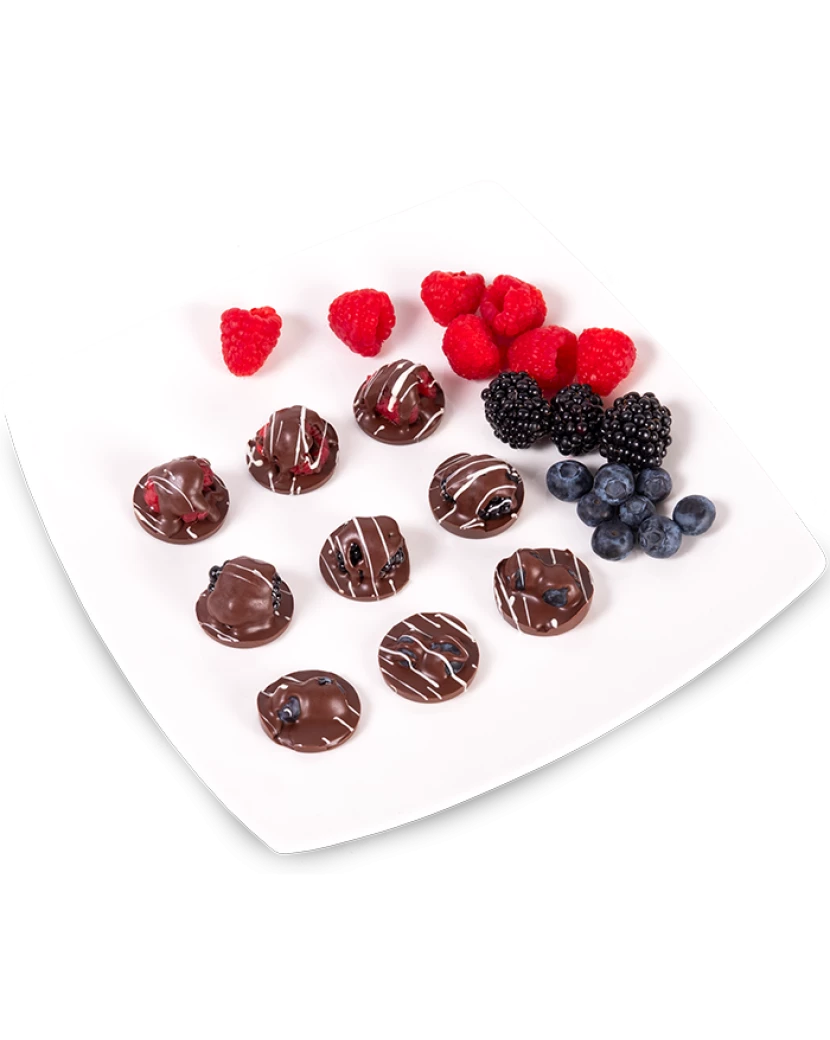 Potěšte sebe nebo své blízké luxusními pralinkami od Frutika. Tato ovocná bonboniéra je plná lesních plodů zalitých v čokoládě. Maliny, ostružiny a borůvky ve výběrové belgické čokoládě jsou jedinečným dárkem, který každého svou chutí a vzhledem ohromí. Vše je zabaleno vždy těsně před vypravením k obdarovanému. Pokud byste chtěli k bonboniéře přidat ještě dárek, podívejte se na Frutiko nabídku, ve které jistě najdete to pravé pro jakoukoliv příležitost.