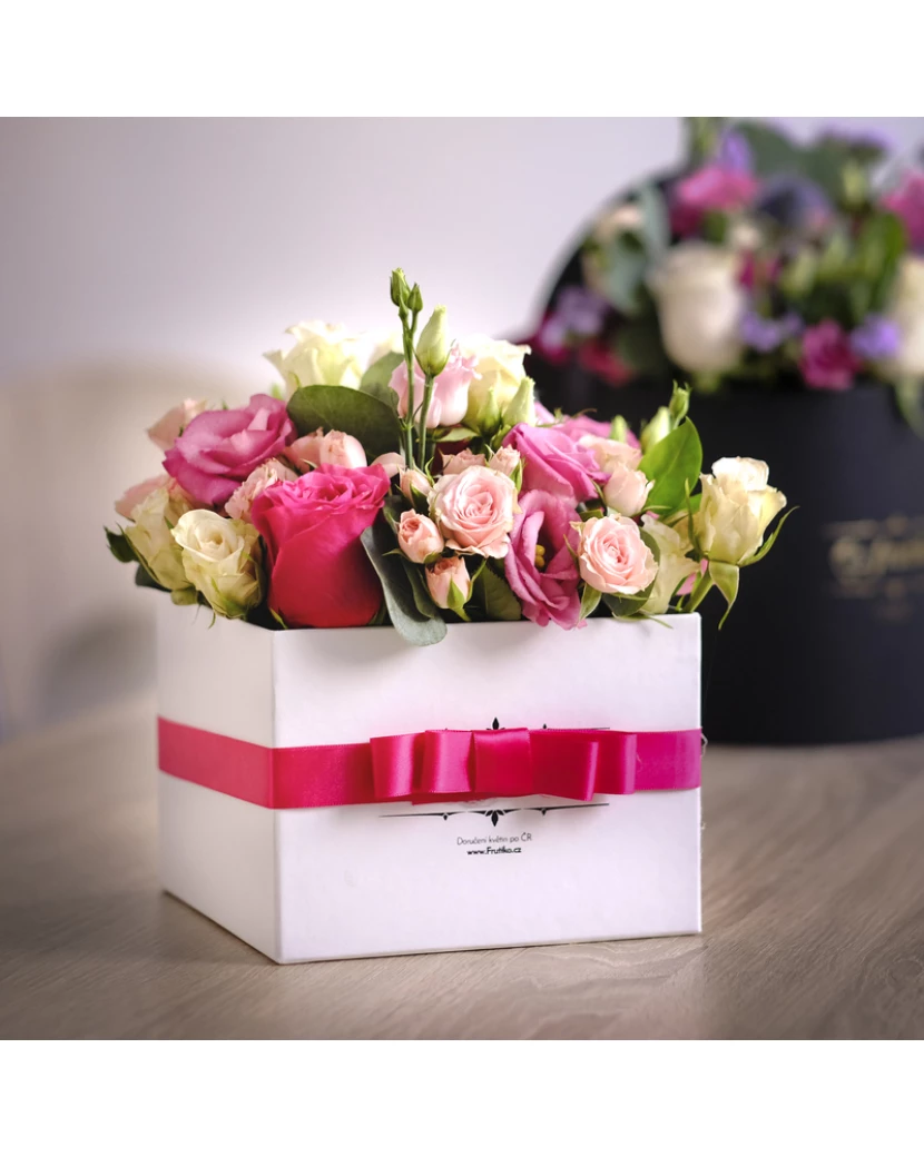 Romantické duše jistě potěší luxusní bílá krabice s romantickými květy, které ladí do růžové barvy. Romantické kytice se rozdávají z lásky. Pokud chcete tu Vaši potěšit, pak je tato volba ta pravá. Krásná bílá krabice, ve které jsou naaranžovány romantické květy dají obdarované jasně najevo Vaše city. Květiny v krabici jsou vždy čerstvé a díky floristické hmotě vydrží krásné až 14 dní.