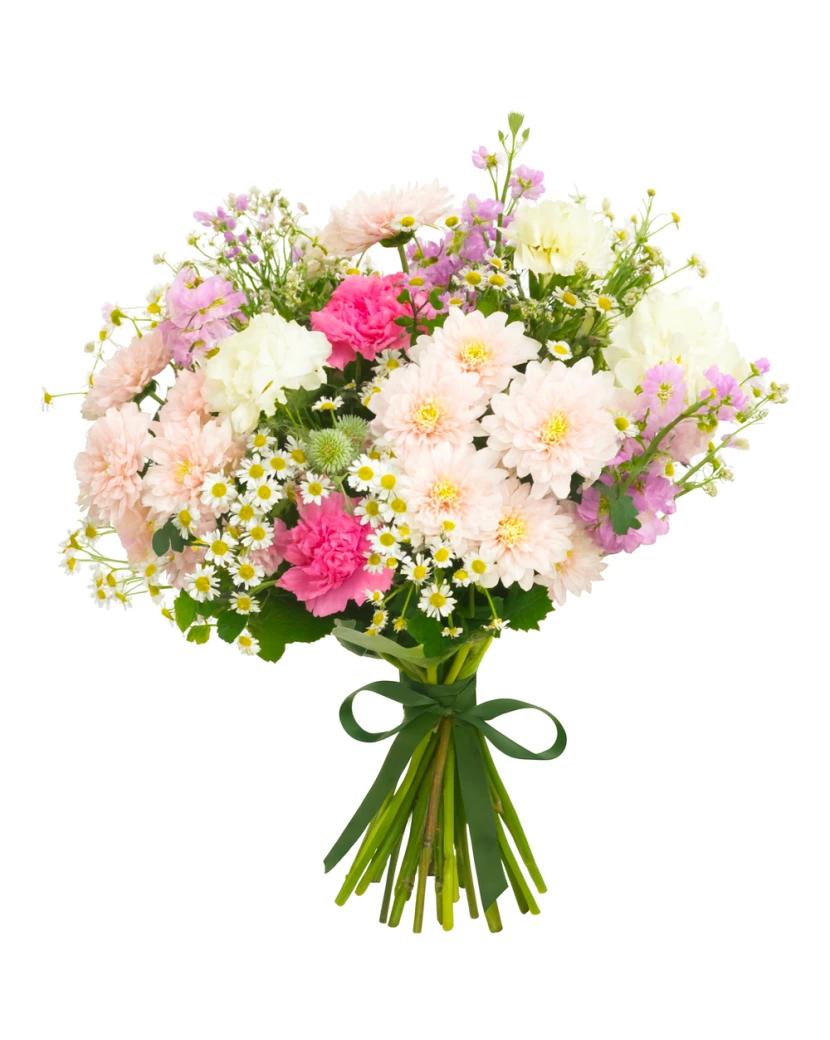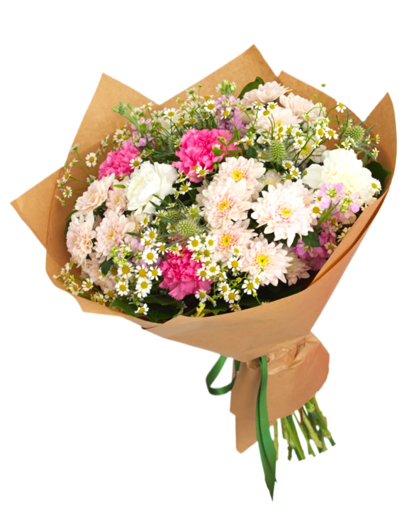 Tento růžový mix květin s karafiáty a chryzantémami se skvěle hodí jako dárek k výročí, k Valentýnu nebo jako poděkování za dobře odvedenou práci. V pugétu najdete karafiáty, které symbolizují moment okouzlení a žádostivost. Chryzantémy jsou velmi specifické květiny pro svůj vnitřní klid, který navozují důvěru, jsou to květiny přátelství nebo též naděje. Naše floristky pro Vás připraví čerstvé květiny, které doručíme kurýrní službou po celém Česku.