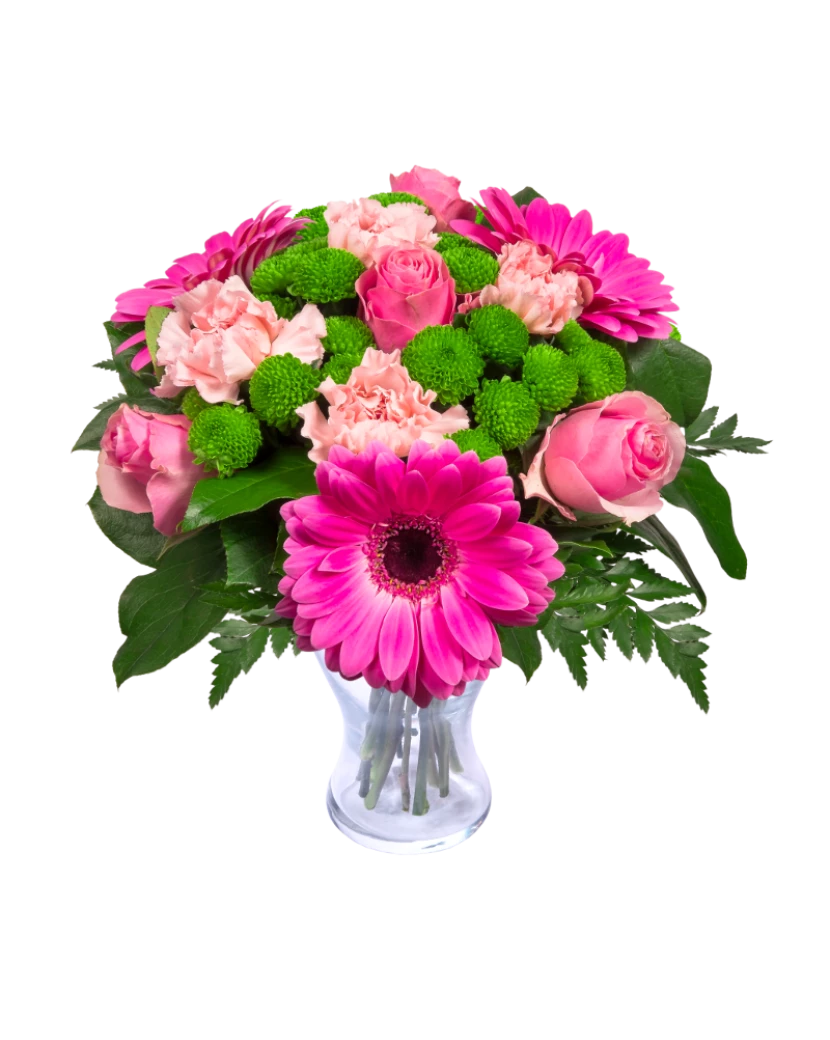 Růžové růže jsou známkou noblesy, ženskosti a elegance. Gerbera je květina, která symbolizuje nevinnost, věrnost a oddanost a hodí se k vyjádření těch nejsilnějších citů. Karafiát je květina okouzlení, vábí a láká svou pestrostí.