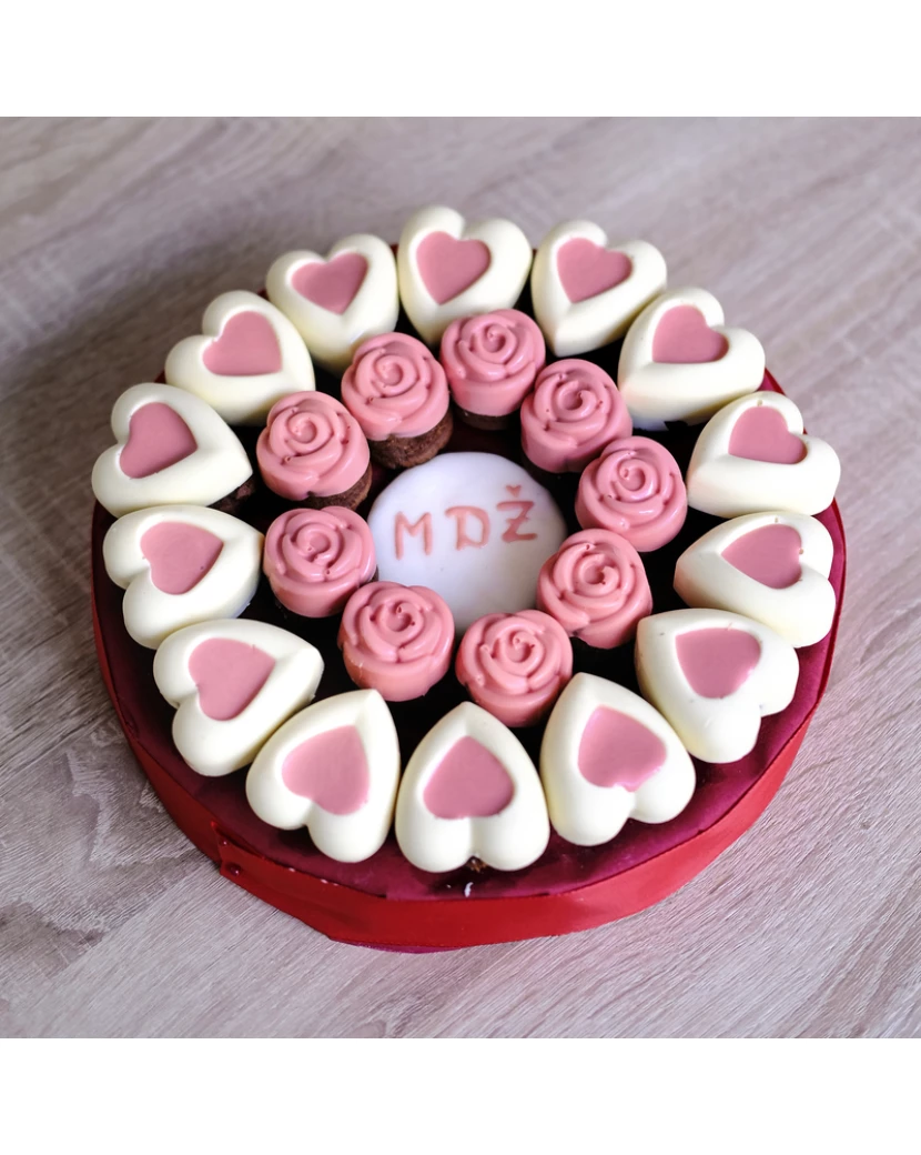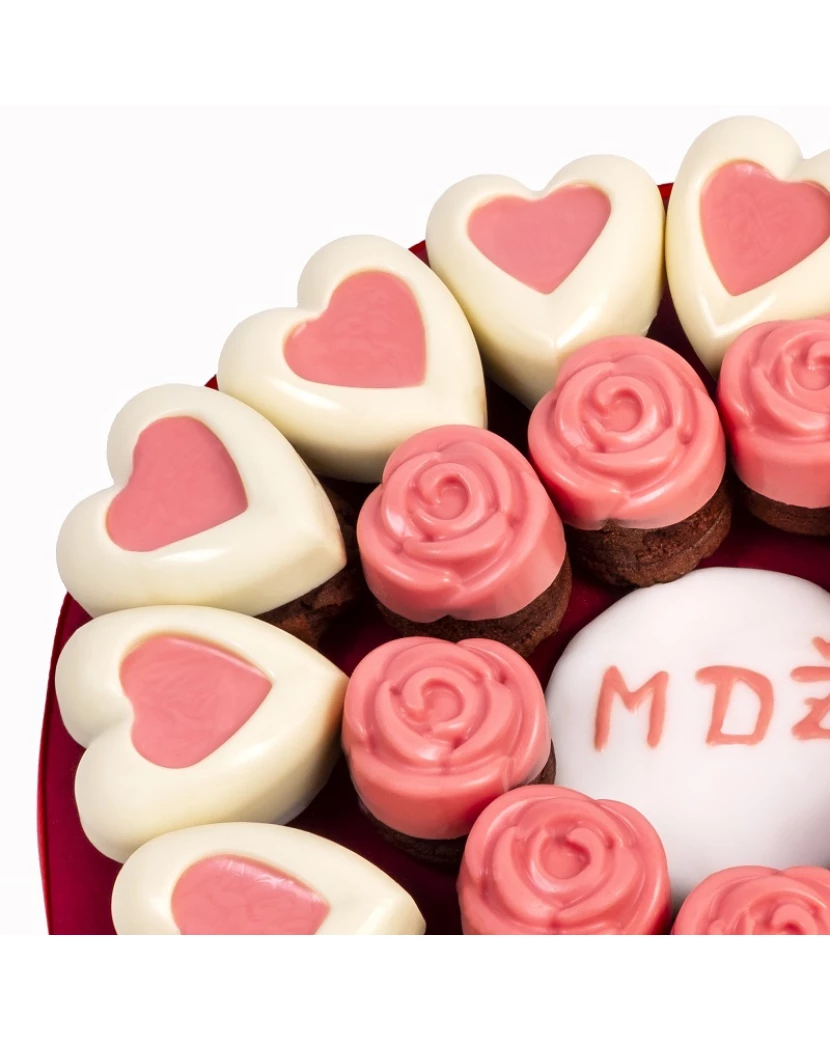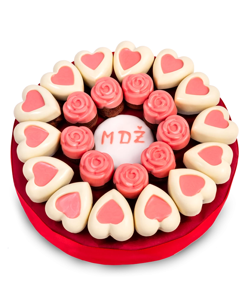 Složení: Čokoláda, Bílá čokoláda, Čokoláda jahodová, Fondán, Kakao, Popcakes, Sušenky, Červené kakaové máslo