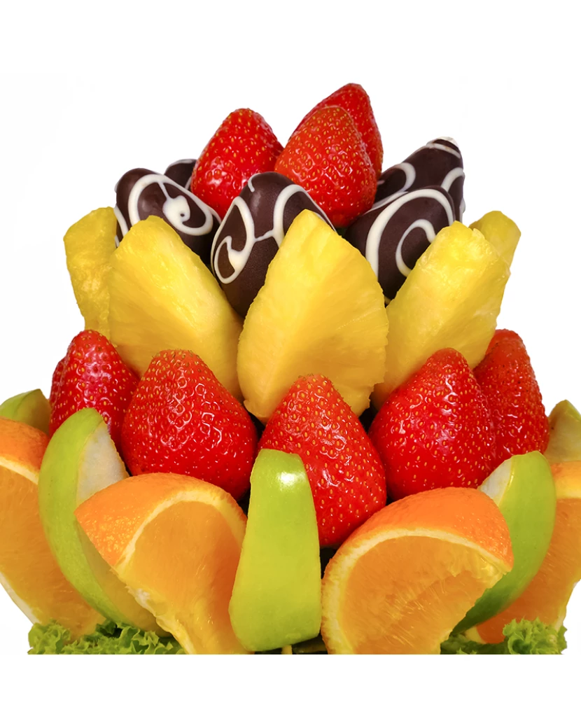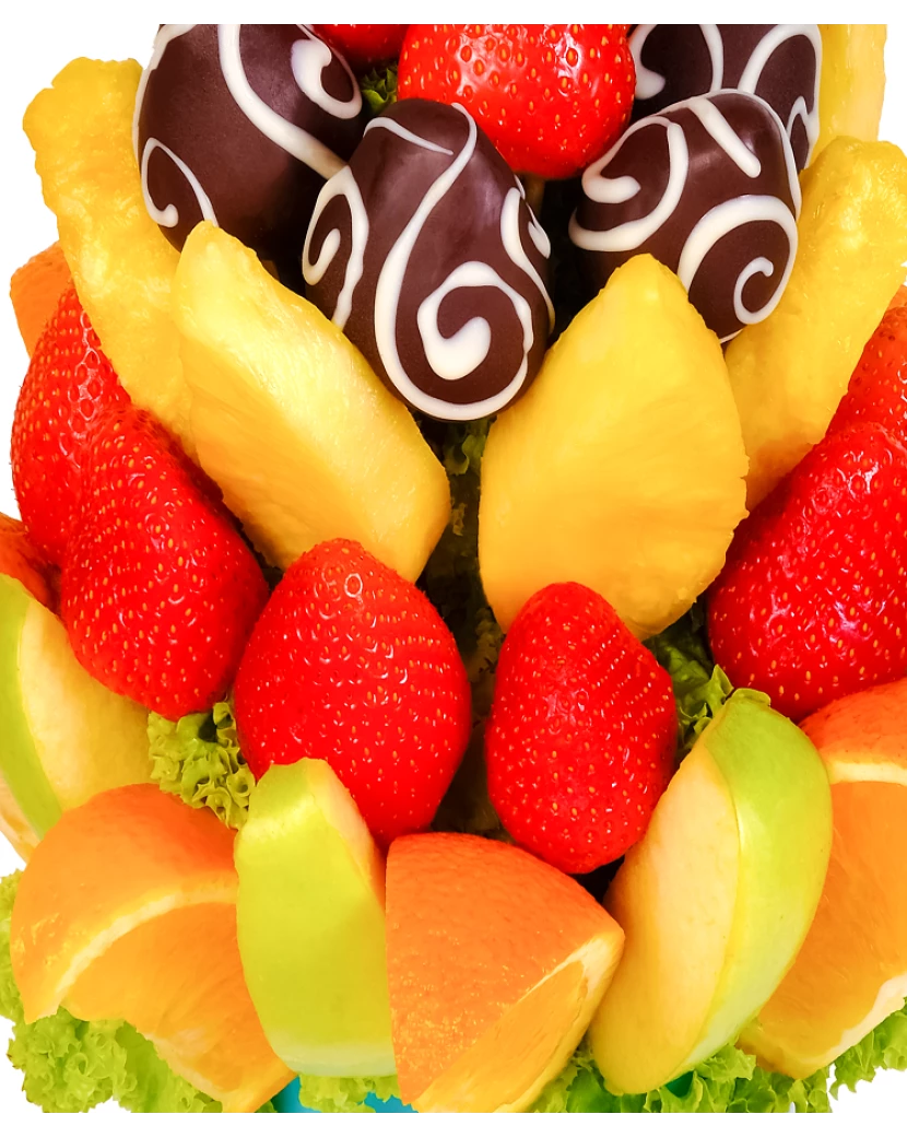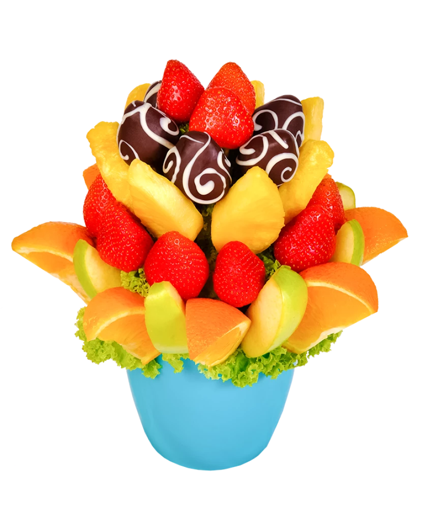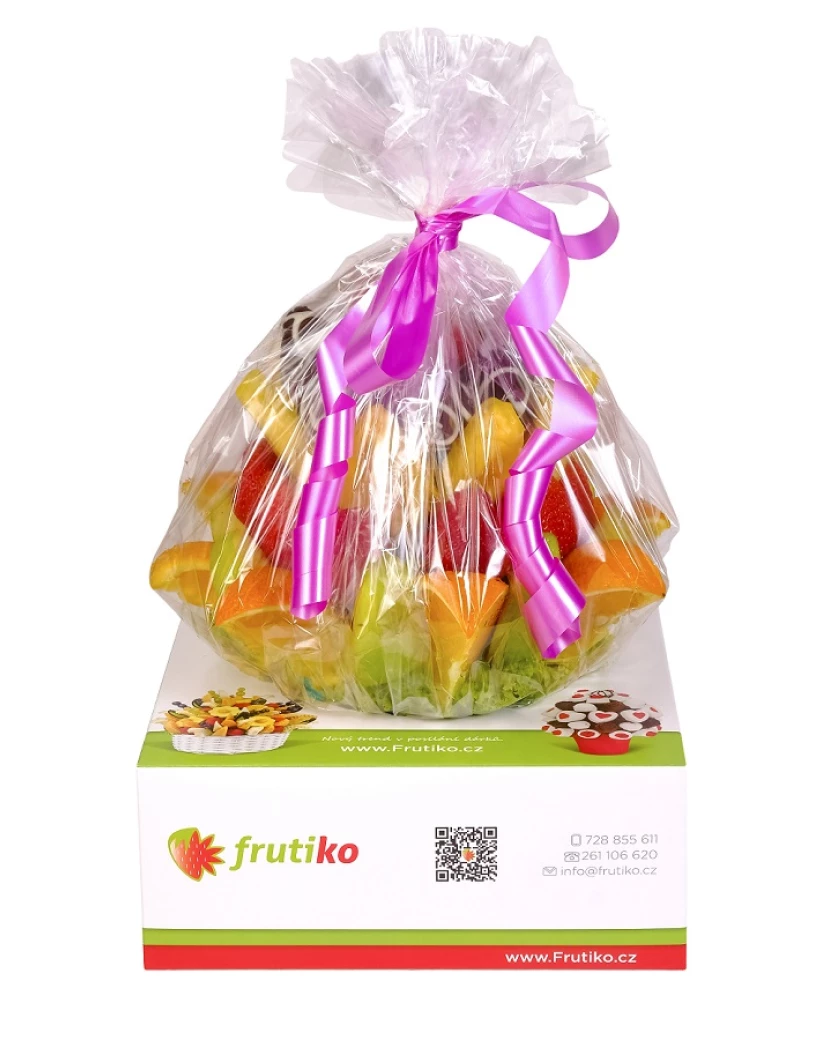 Ovocné kytice se hodí jako dárek nebo překvapení opravdu pro každého. Děti i dospělí si zamilují sladkou chuť ovoce, některé kousky jsou dokonce namočené v kvalitní belgické čokoládě. S naším doručením kamkoliv po České republice se můžete spolehnout, že obdarovaného zastihneme a kytici s Vaším přáním v pořádku předáme. Podívejte si i do nabídky dárků nebo ovocných bonboniér, které můžete ke kytici přidat.