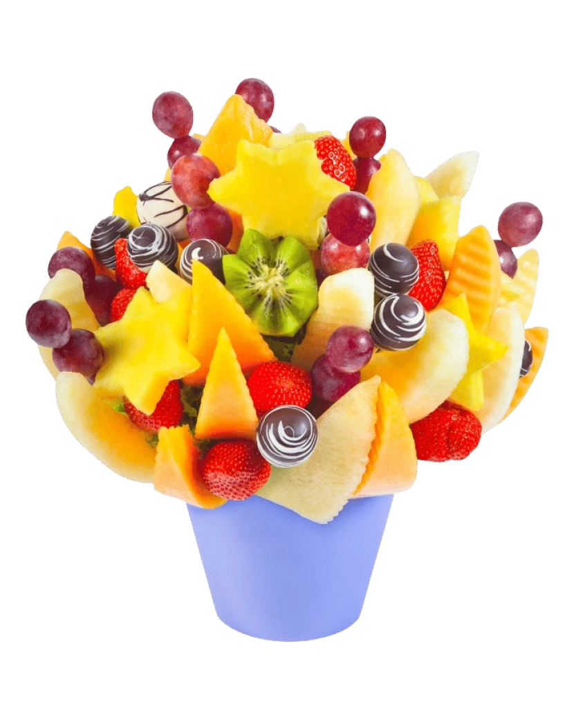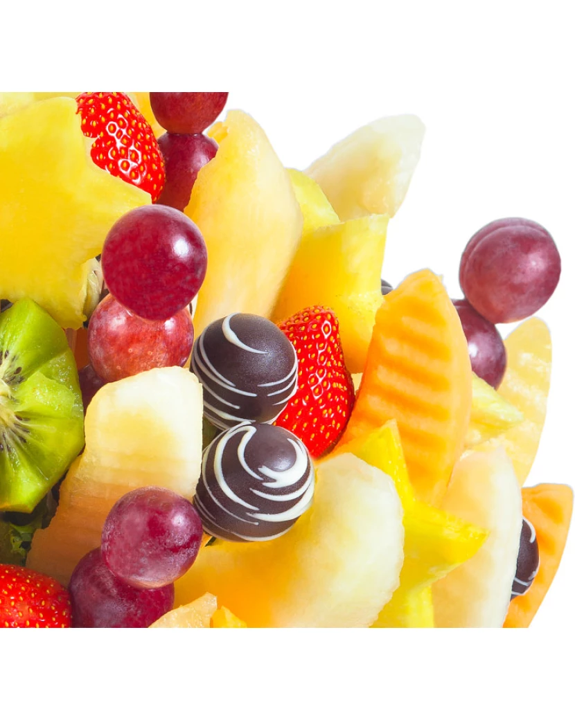 Ovocná kytice plná svěžího, sladkého a barevného ovoce, to je Svěží láska. Říká se, že nová láska je křehká jako kvítek a je třeba o ni pečovat, aby rozkvetla. To symbolizuje i tato rozkvetlá ovocná kytice plná vitamínů. Meloun Cantaloupe doplňují ananasové hvězdy a květiny z kiwi, jahod a hroznového vína. Kytici doplňují kousky ovoce namočeného v tmavé a bílé belgické čokoládě. Je skvělým dárkem pro jakoukoliv výjimečnou příležitost vaší drahé polovičky, hodí se i pro výročí a oslavy.