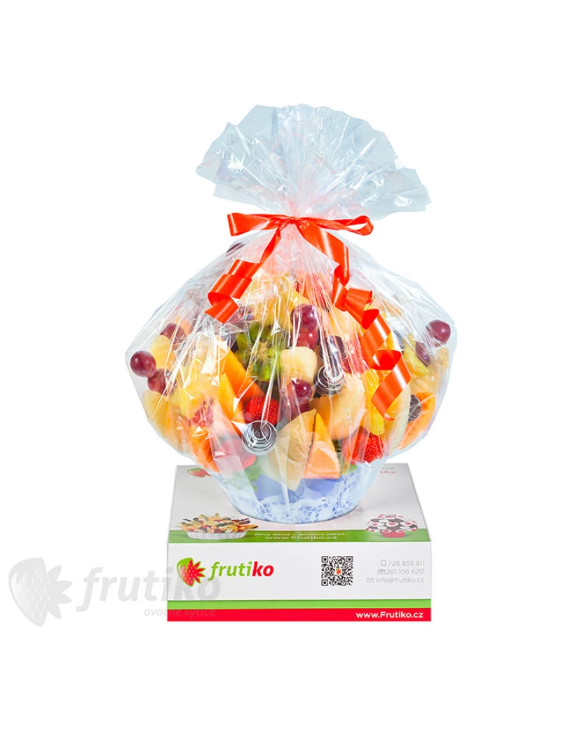 Kytice byla úžasná. Objednala jsem malou velikost, protože jsme jenom dvě, ale ovoce je na ní dost, bylo zralé a sladké a šťavnaté, a vypadalo to moc pěkně. Rozhodně si ovocné kytice od frutiko objednám znovu.