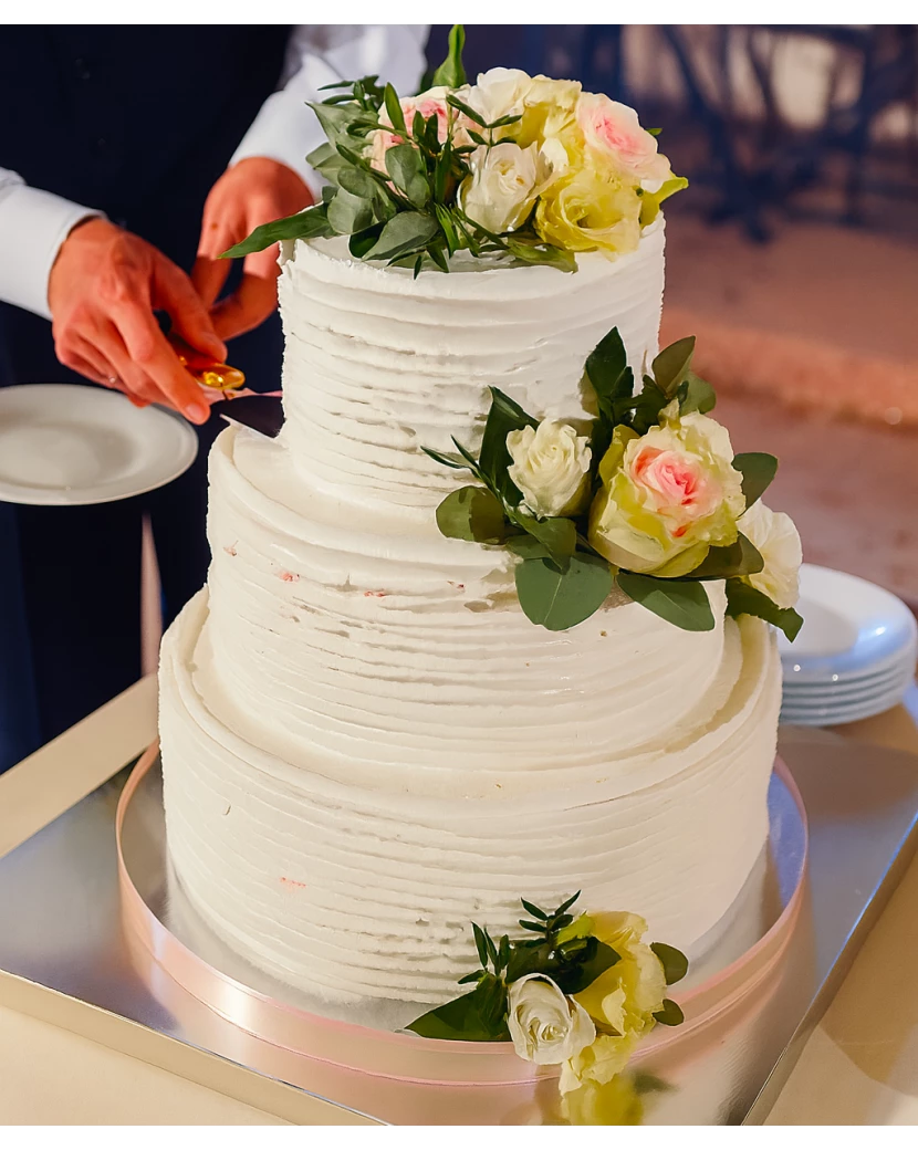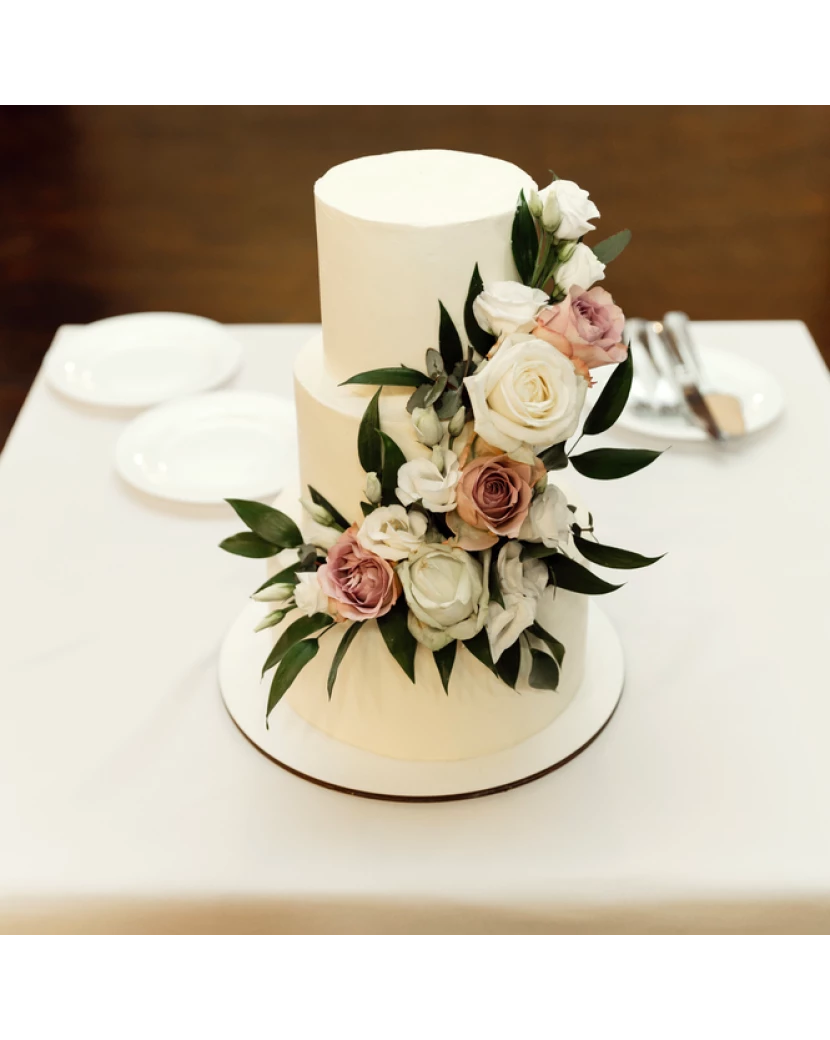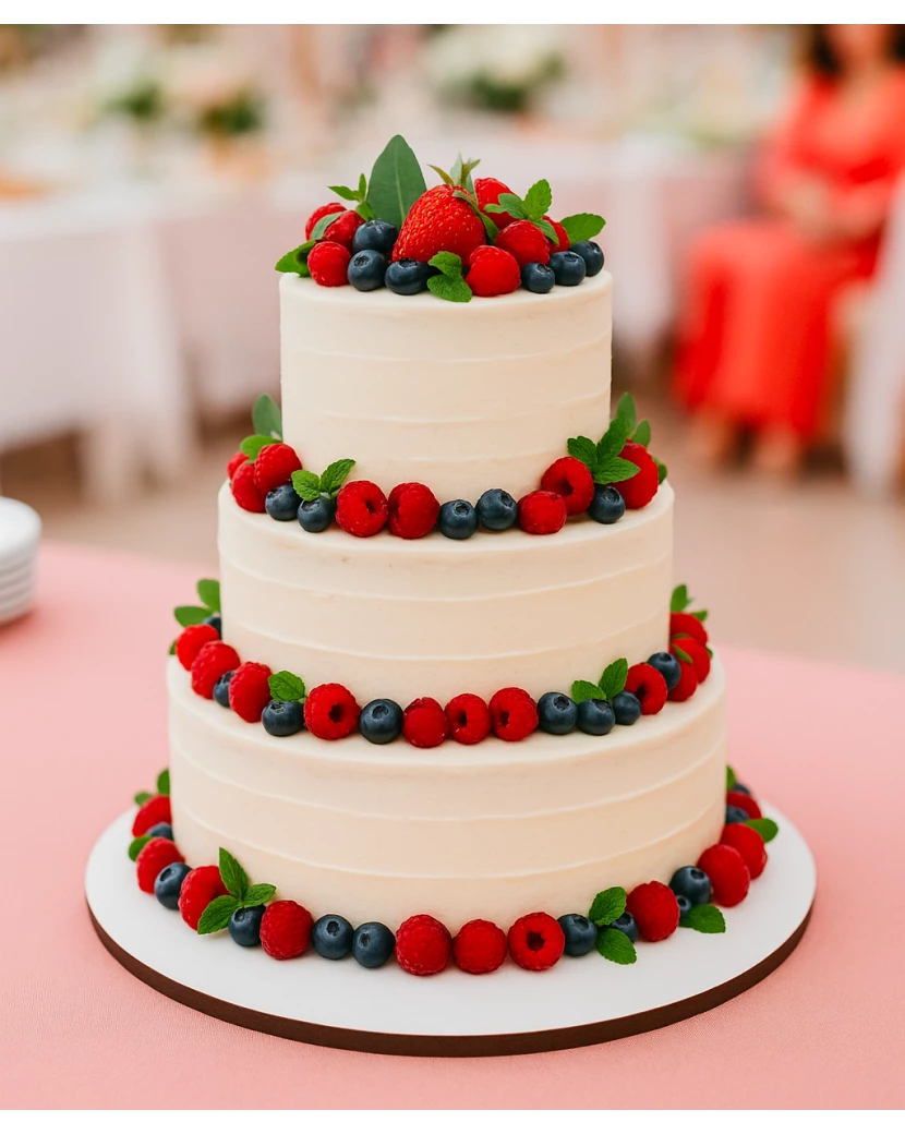 Svatební dort je třešničkou na dortu každé svatby. Tento elegantní třípatrový svatební dort ve stylu naked cake zaujme svým přírodním vzhledem, jemným zdobením a výjimečnou chutí. Je ideální volbou pro romantické venkovské, rustikální i boho svatby. Dort je tvořen lehkým korpusem s vanilkovým nebo kakaovým základem, vrstveným s jemným mascarpone krémem a sezónním ovocem. Každé patro dortu je dozdobeno čerstvým ovocem, květy a ozdobami dle vaší volby, aby ladil s celkovým stylem svatby.