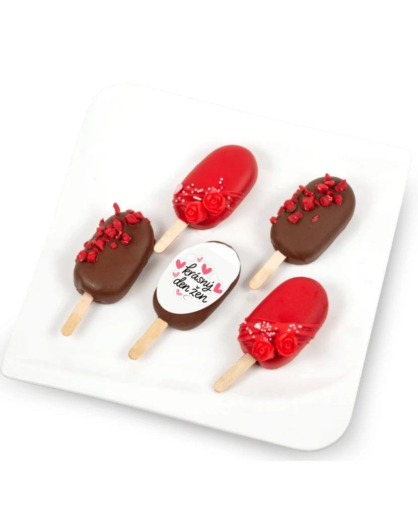 Dortové nanuky vypadají stejně jako klasické ovocné nanuky, ve skutečnosti jsou ale z dortového těsta. Tyto nanuky vyrábíme tak, že upečeme dortový korpus podle klasického receptu, ten rozdrobíme a smícháme s krémem z mascarpone a belgické čokolády. Těstem naplníme formičky na nanuky, necháme vychladnout a následně namočíme do belgické čokolády. Dortové nanuky jsou velmi oblíbené a nabízíme je v mnoha barvách, příchutích a designech. Tyto valentýnské nanuky jsou zdobené čokoládovými ozdobami.