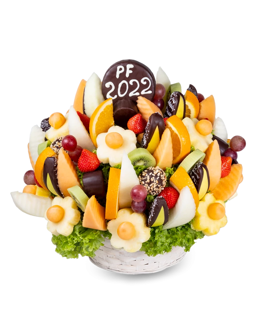 Vánoční přání je originální typ květiny z ovoce, která stylově doplní každou oslavu Nového roku i vánoční večírek. Vršek této kytice ozdobíme vámi vybraným číslem nebo nápisem z ananasu, které jednoduše zadáte při objednávání této kytice do poznámky k objednávce. Text Vašeho přání k Vánocům můžete napsat do pole vzkaz pro příjemce a my jej vytiskneme do hezkého blahopřání a přidáme ke kytici. Tento lahodný vánoční dárek obsahuje cukrový meloun a meloun kantalup, hrozny, jahody, ananasové květy a jablíčka Granny Smith v belgické čokoládě. Jako netradiční vánoční dárek poslouží také ovocná bonboniéra Vánoční krabička.