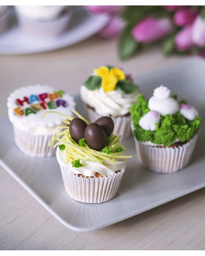 Velikonoční cupcakes jsou ideální a originální odměna pro koledníky, kteří příjdou na velikonoční pondělí s pomlázkou. Určitě si rádi z výslužky odnesou i něco jiného než vajíčka nebo čokoládu. A navíc si na nich velmi pochutnají. Lahodné čerstvé cupcaky s polevou a dekorací v podobě velikonočních kuřátek a kraslic potěší oko každého koledníka nebo návštěvu, které je můžete nabídnout. Velikonoční cupcakes se budou krásně vyjímat na tabuli mezi beránkem, pletencem a jarními květinami.