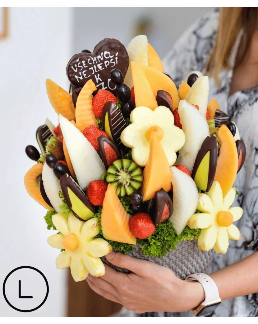 Mohu jen doporučit. Ovoce bylo velmi krásně naaranžováno a čerstvé. Největší úspěch měli jablka v čokoládě a hrozno na špejli, to zmizelo nejrychleji. Kurýr mi koš přivezl načas, pomohl i do patra vynést druhý. Příště objednám zase.
