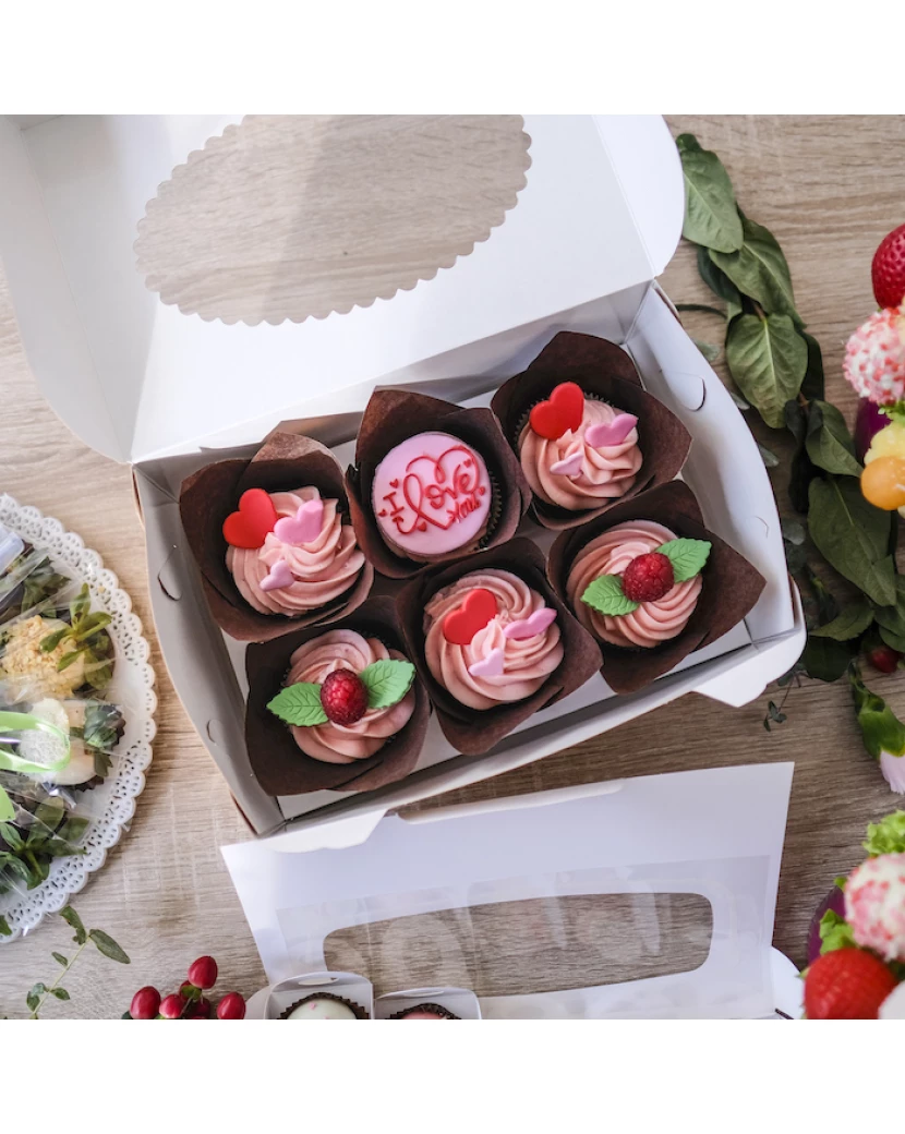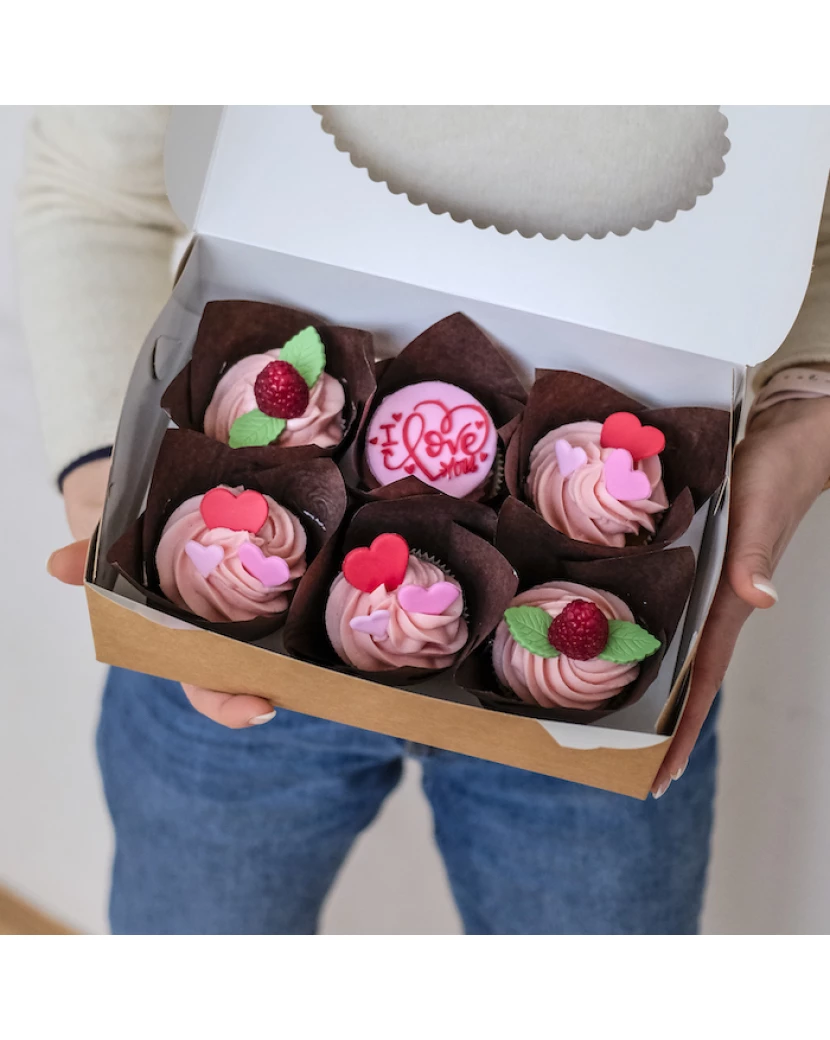Zamilované cupcakes s fondánem ve tvaru srdcí a nápisů I love you jsou krásným a lahodným dárkem na Valentýna, nebo kdykoliv, když chcete dát najevo své zamilované pocity. Poleva červené, růžové a bílé barvy z nich činí ideální dárek pro ženu každého věku. Frutiko má na cupcakes recept vycházející z kvalitních surovin a dortíky peče vždy těsně před doručením.